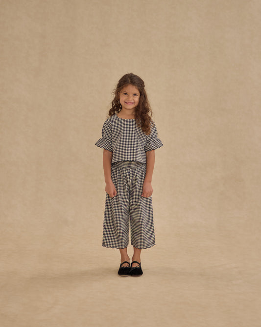 Black Gingham Wide Leg Pants