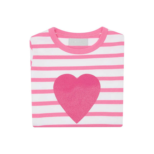 Hot Pink & White Breton Striped Love Heart T Shirt