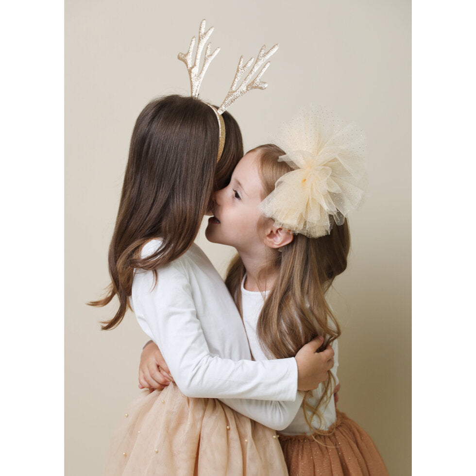 Every little queen of make-believe needs a crown of her own—and the Lady Penelope Alice Band delivers just that. Wrapped in glittering gold, this elegant headband turns everyday play into a royal occasion. Lightweight, comfortable, and designed to stay put through twirls, tea parties, and grand adventures, it’s the perfect finishing touch for both festive looks and everyday sparkle.