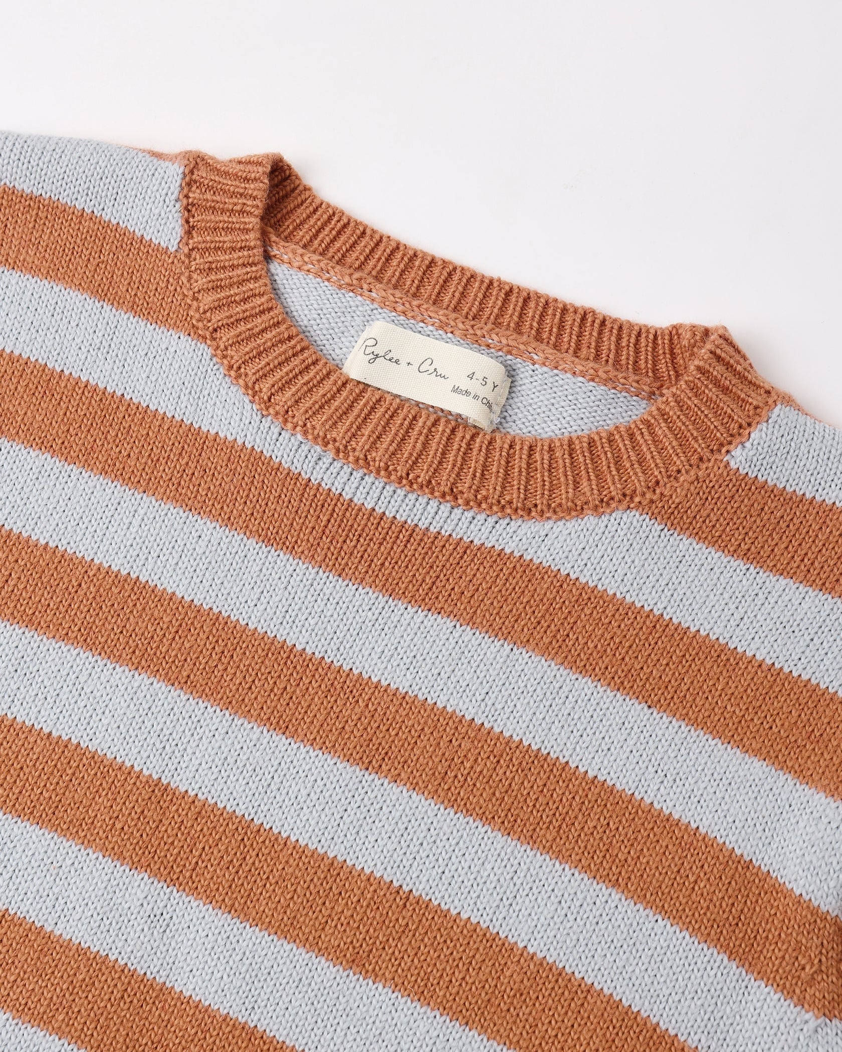With its cheerful coral-red and soft cream stripes, this cozy knit set captures that relaxed, vintage Americana vibe—perfect for sun-soaked afternoons, backyard adventures, and festive family gatherings. The short-sleeve top pairs effortlessly with the coordinating shorts, creating an outfit that’s as easy to wear as it is adorable.