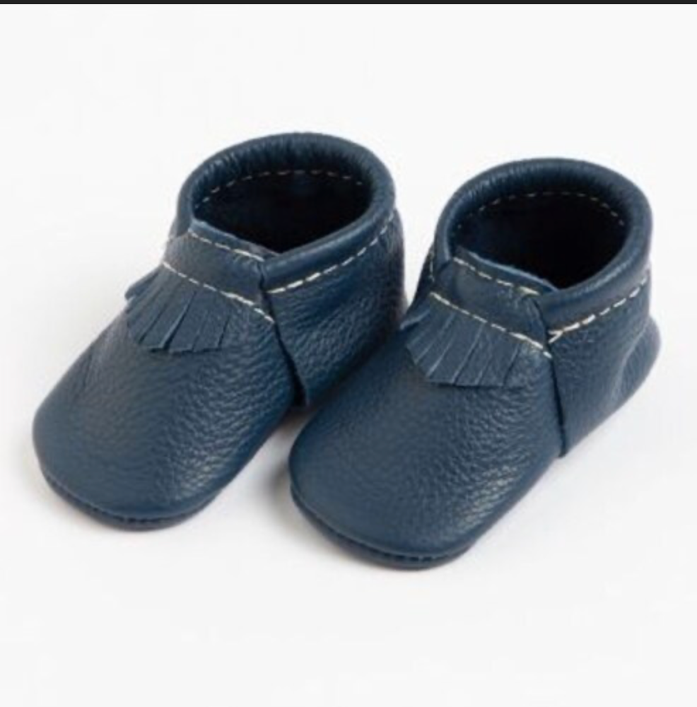 Step into style with our Anchor Moccasins! Handcrafted from premium leather, these shoes boast a classic Moccasin design with playful fringe detail. The elasticized ankle makes them easy to slip on, providing gentle support and promoting healthy foot development for your little one. Made with premium leather, these shoes are built to last and grow with your child's feet.