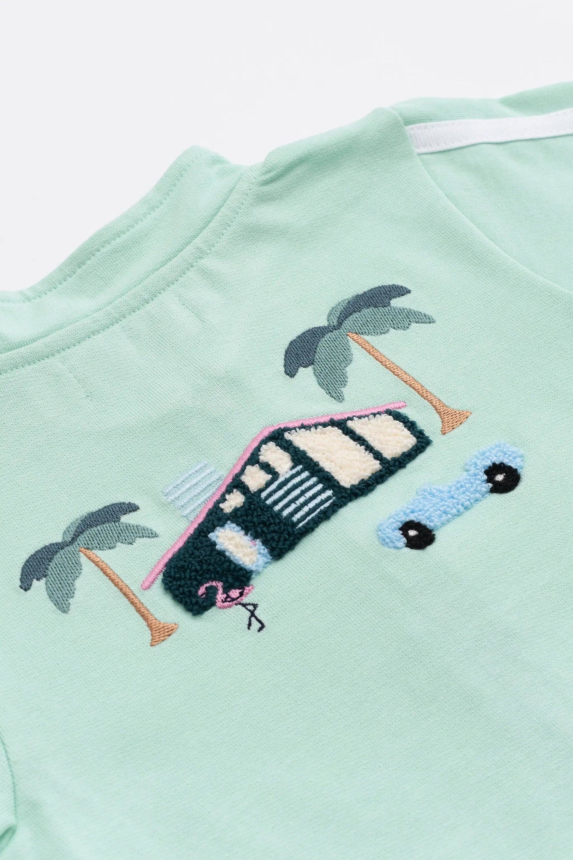 Wrap little ones in sunshine vibes with the Monica & Andy Palm Springs on Mint Embroidered Jacket—a cozy organic cotton sweatshirt-style jacket that’s as soft as a mint julep on a breezy patio. Featuring charming embroidery and a laid-back Palm Springs print, this relaxed-fit layer is perfect for chilly mornings, weekend adventures, or just adding a playful pop to any outfit.