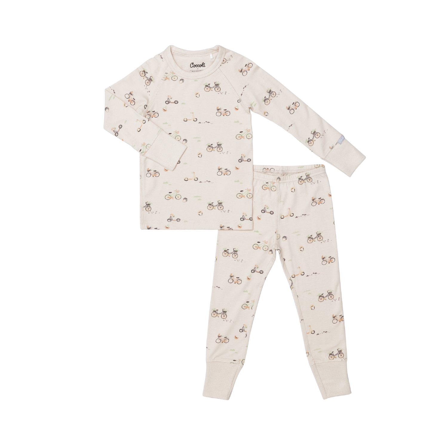Coccoli Bikes on Oat 2-Piece Pajamas – For Little Dreamers Who Pedal in Their Sleep!