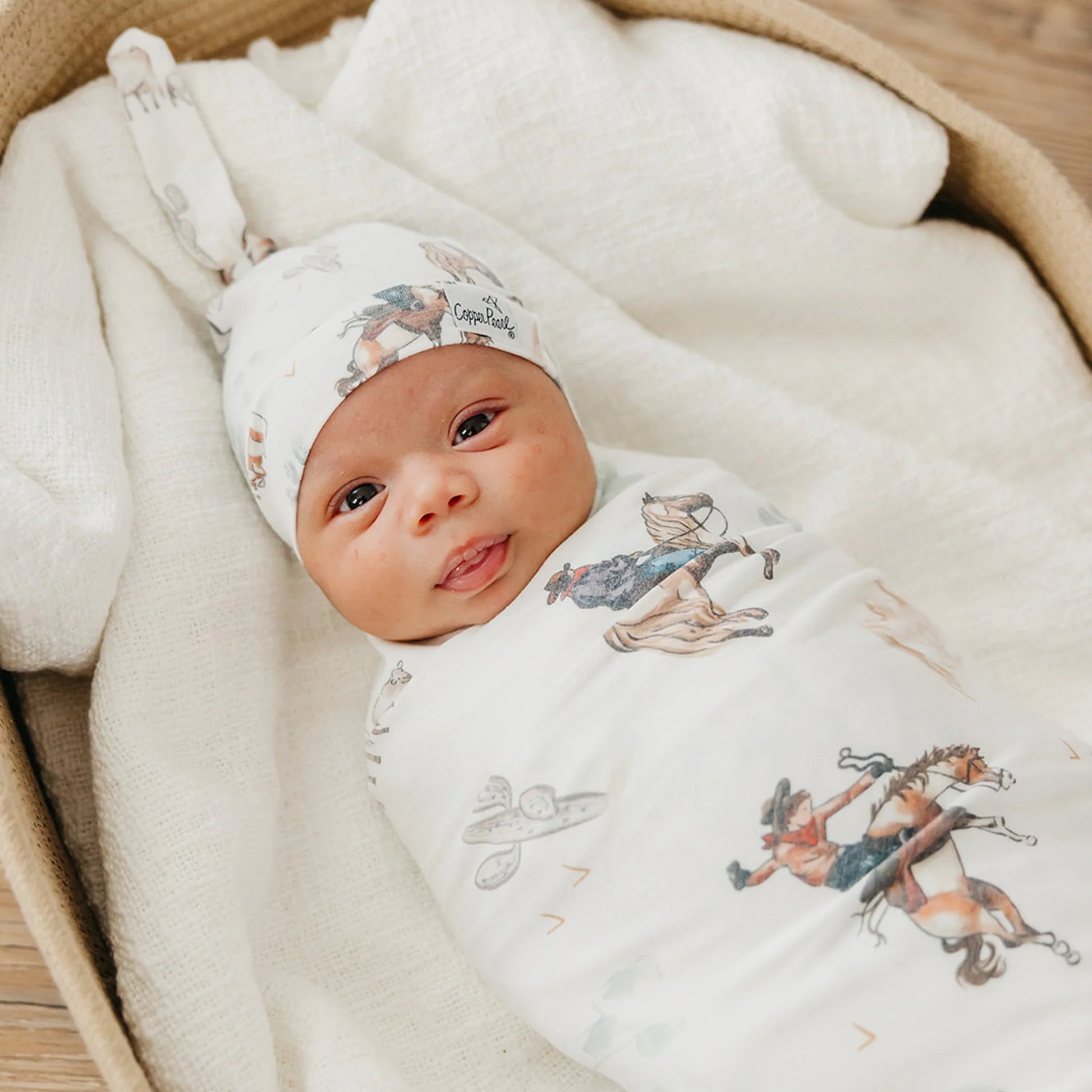 Made from Copper Pearl’s signature stretchy-soft fabric, it’s gentle on baby’s skin and snug as a nap in the saddle. The adjustable knot means a perfect fit from the first “Howdy!” to the next big rodeo (aka nap time). 💤✨
