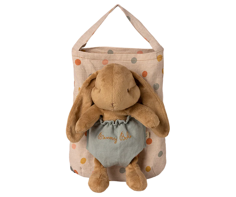 Bunny Holly and Bunny Bob are a must-have for all small cuddlers. Their plush design is so soft, and they fit perfectly in your arms. Bunny Bob comes with a sweet polka dot bag with a pocket on it, so you can carry your friend along.