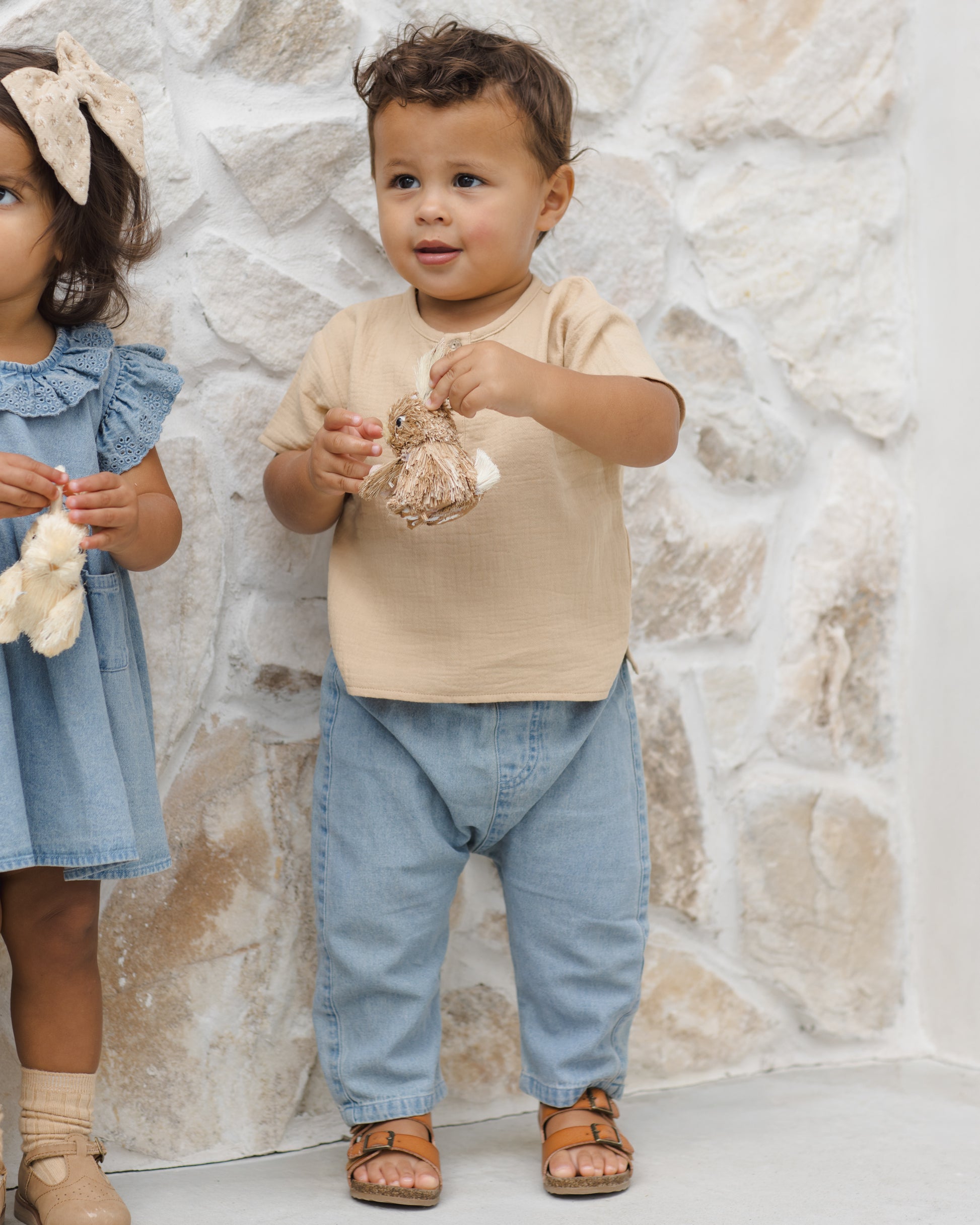 Classic, comfortable, and effortlessly cool—the Chambray Henry Pants are the kind of everyday essential that somehow still feels special. With their soft chambray fabric and easygoing silhouette, they’re ready for morning playdates, afternoon exploring, and cozy evenings in. 🌾🧺