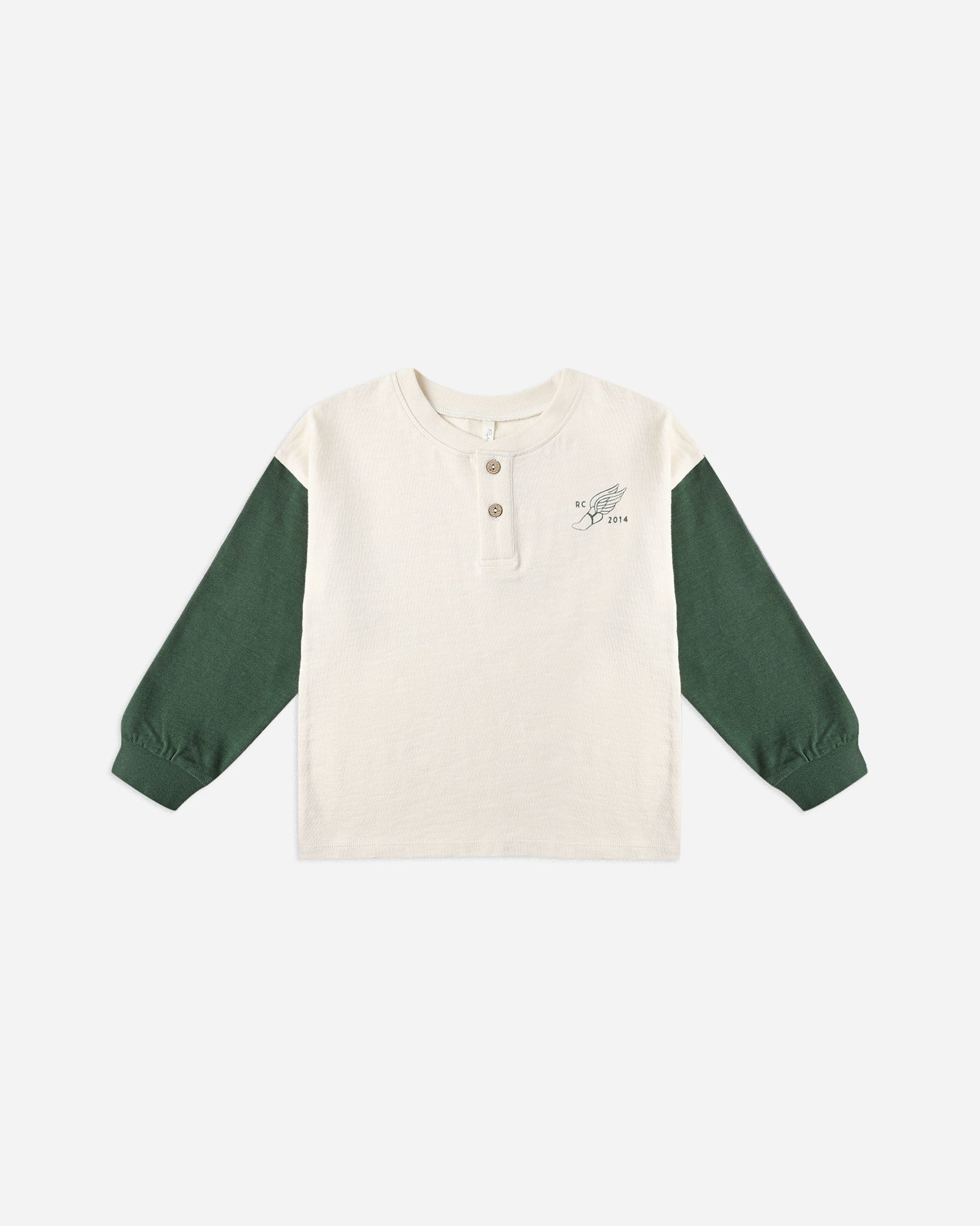 Give their everyday look a boost of inspiration with this sporty Chase Your Dreams Henley by Rylee & Cru. With classic green raglan sleeves, a soft natural body, and bold varsity-style back print, this long sleeve feels like a pep talk they can wear. 🏃♂️💨💫