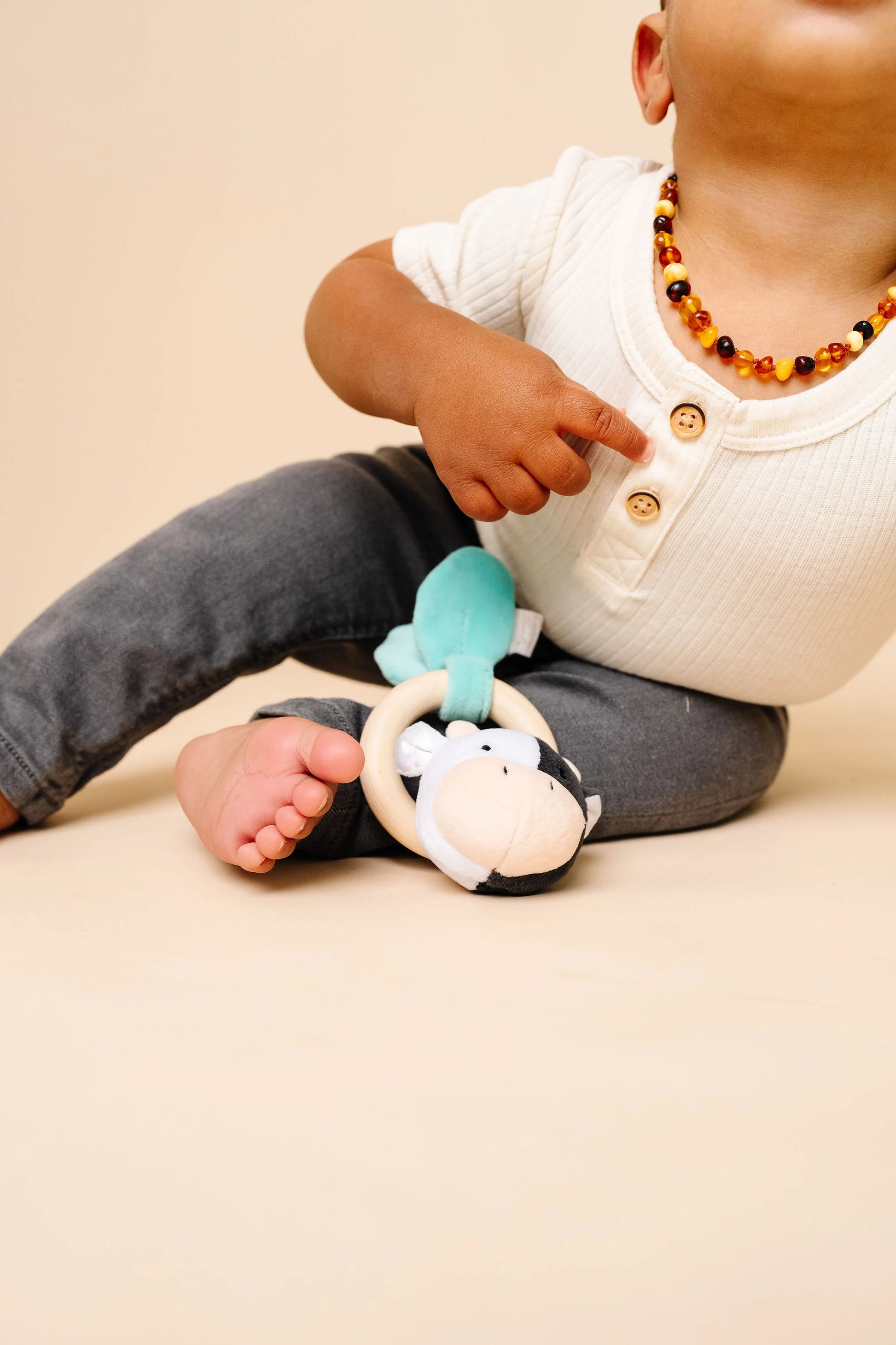 Perfectly pint-sized for tiny hands to hold and shake, Colby gives just the right moo-sical rattle with every wiggle. With soft textures, sweet spots, and that gentle jingle-jangle charm, he’s the ultimate sidekick for tummy time or car ride adventures. 🎶🚗