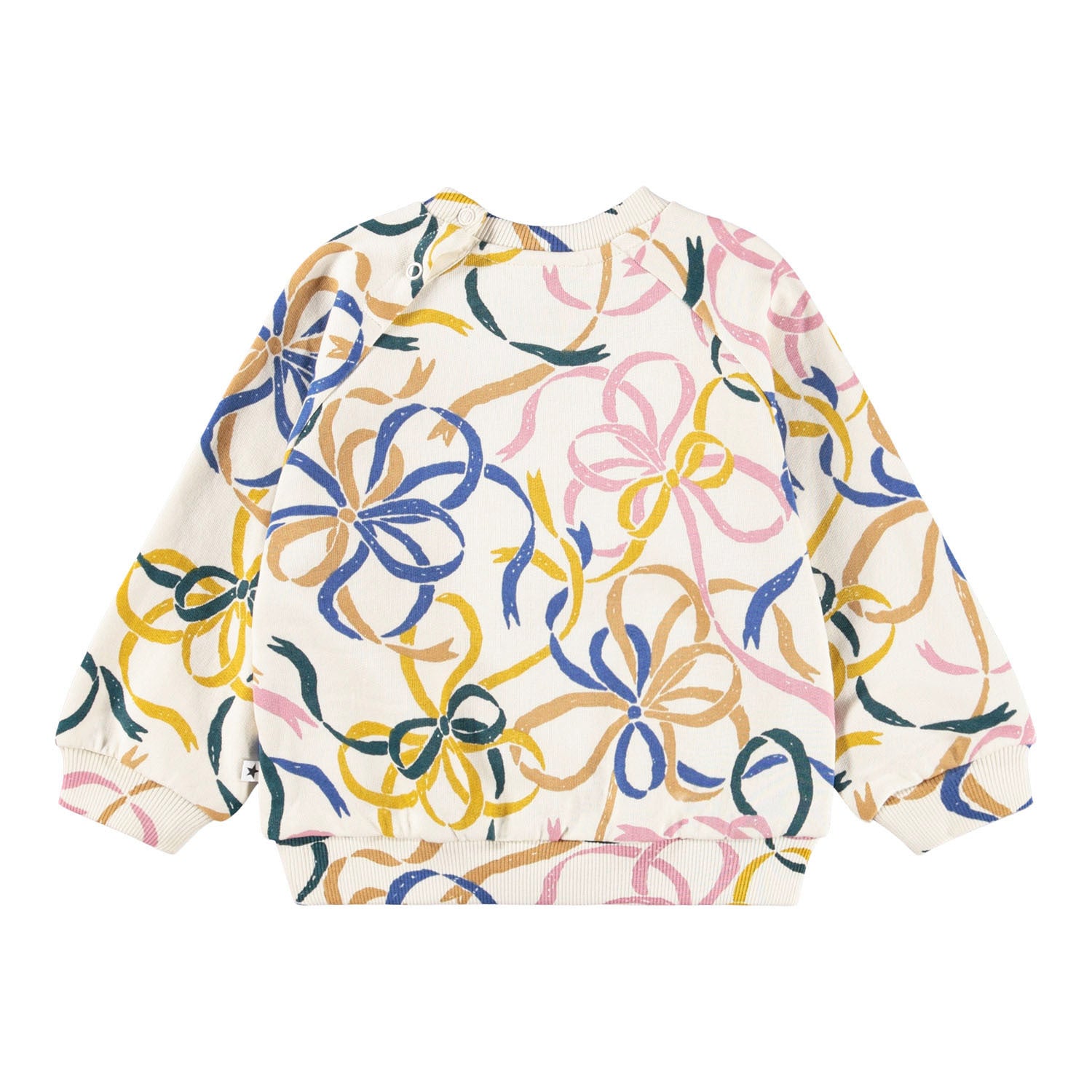 🎀✨ Meet the “Festivity Bows” Sweatshirt by Molo — a joyful tumble of color and celebration in cozy sweatshirt form! 🎨💫
