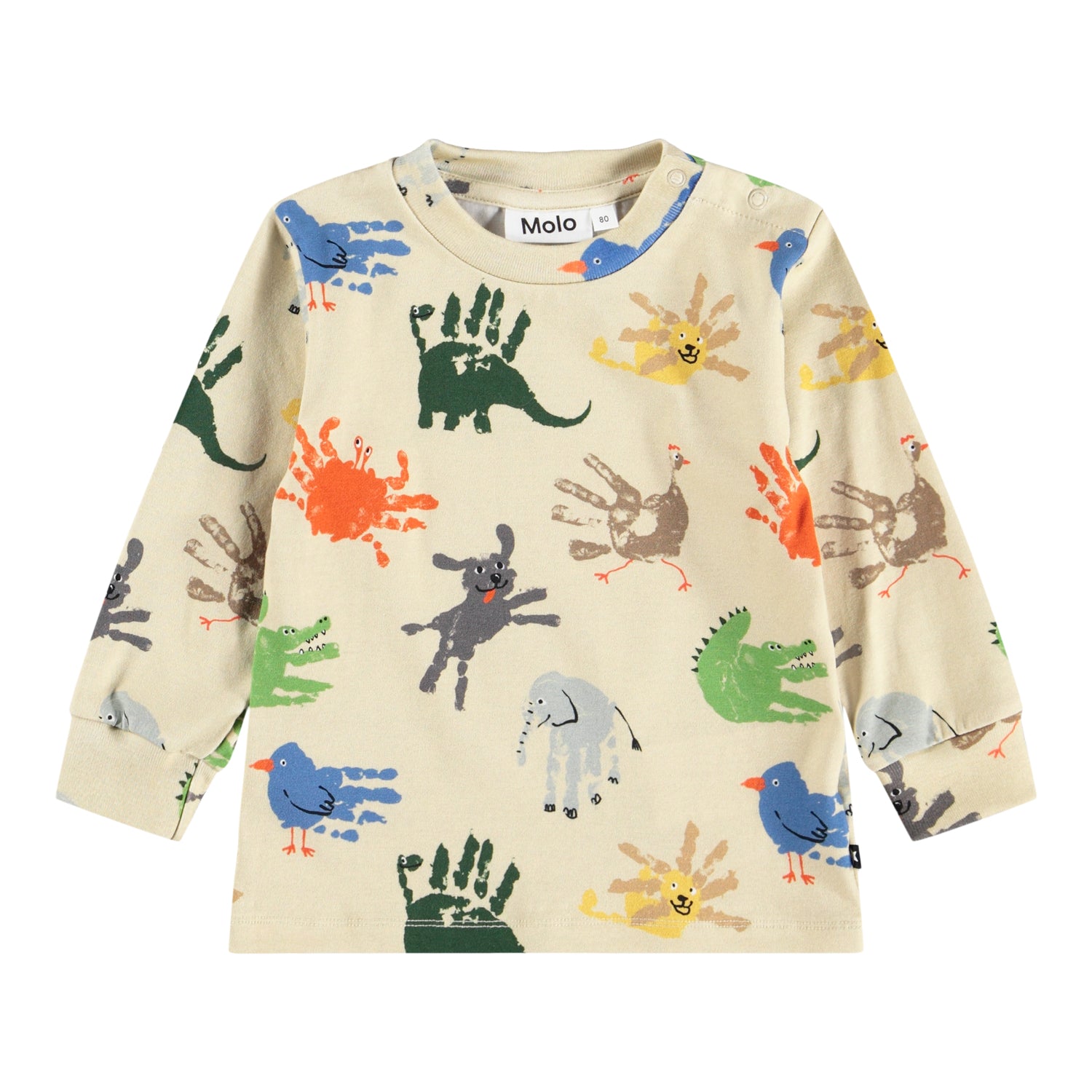 Say hello to a handmade masterpiece—literally! 👋🦕🦜 The Molo Eloy Hand Animals Top is a parade of pint-sized palm prints turned into wild and whimsical creatures! From dino-high-fives and chirpy birds to giggly elephants and cheeky crabs, this soft cotton top turns every day into a wearable art show. 🎨🐘🧡