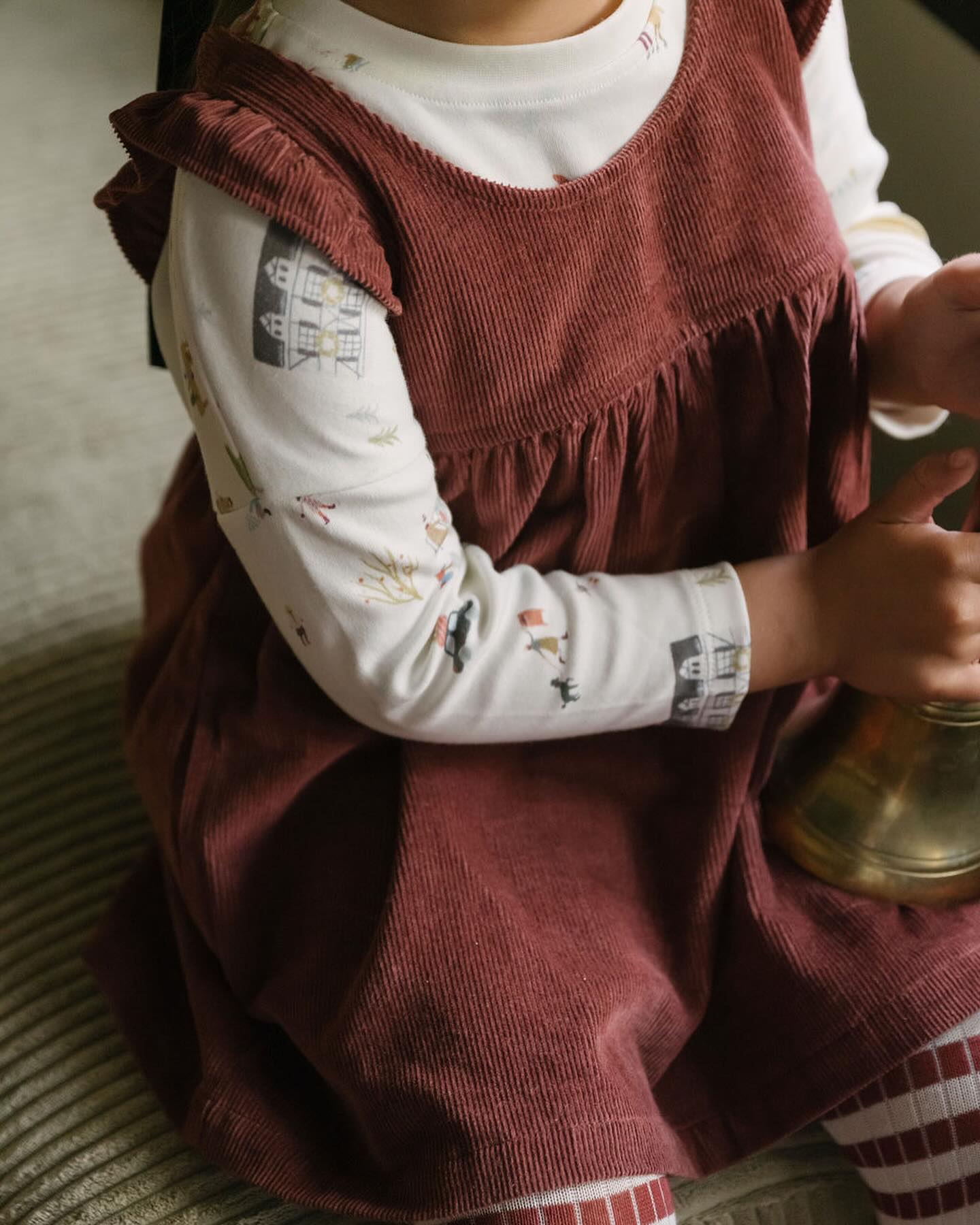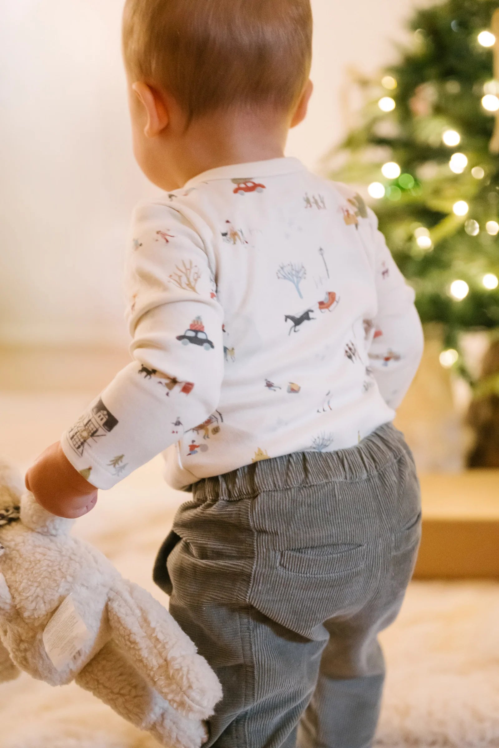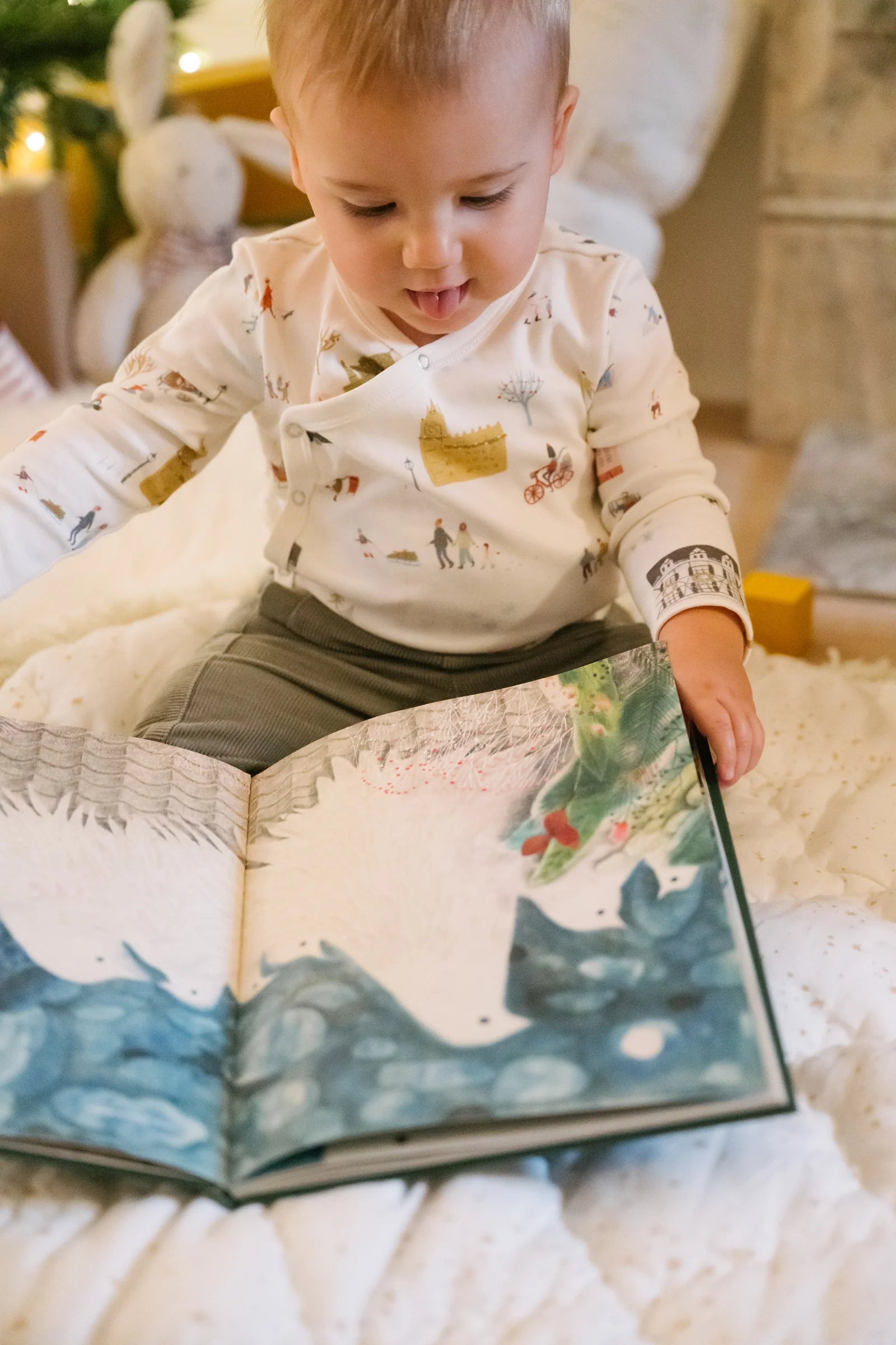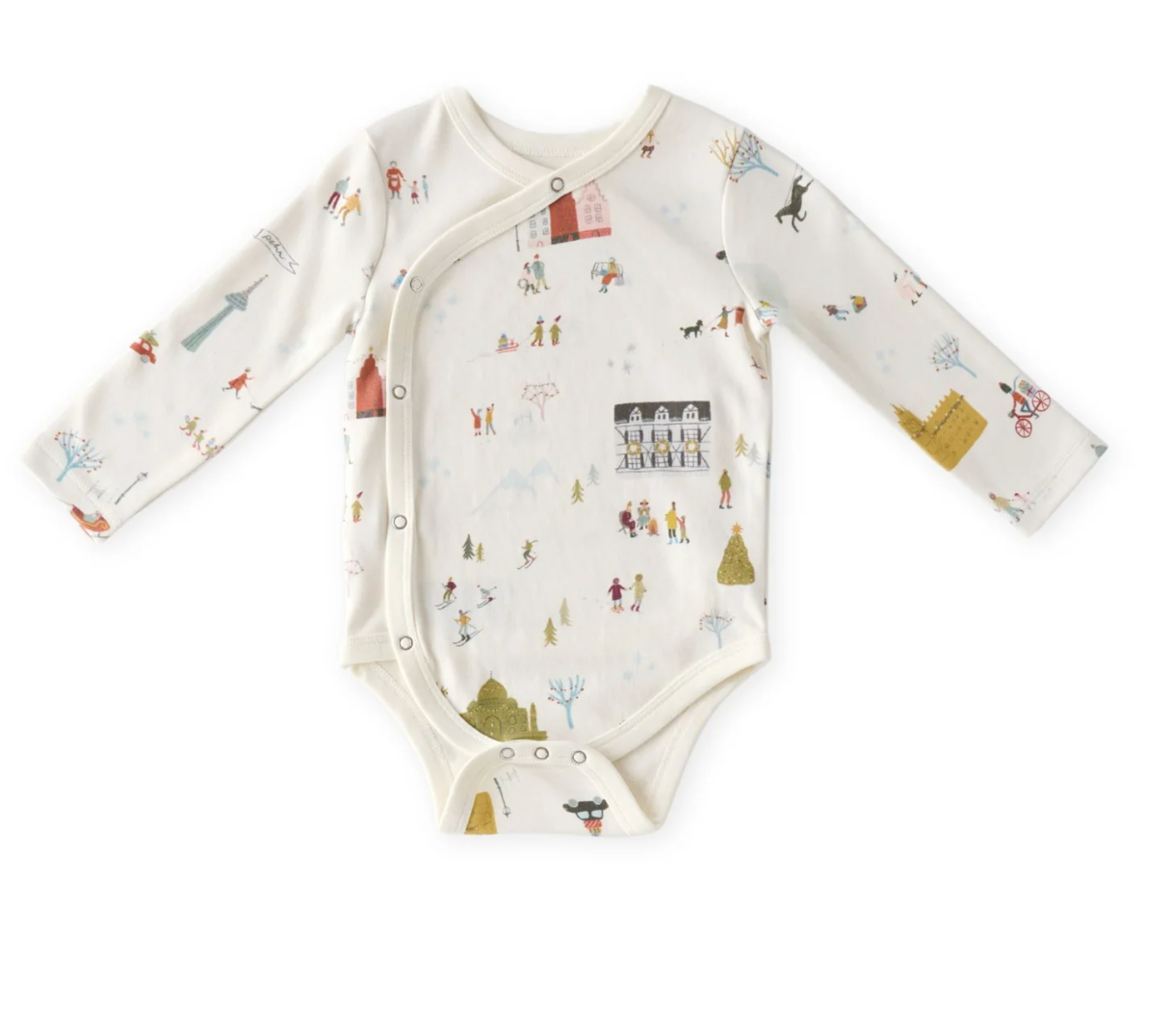 Unleash some holiday whimsy with our Explore the World Holiday Kimono! Made with 100% organic cotton and dyes, this long-sleeved Kimono One-Piece offers thoughtful details such as sleeve cuffs and crossbody kimono snaps for easy changes. The whimsical print captures the festive hustle and bustle of the season. This piece is bound to be a staple in your littles wardrobe. Ethically made for guilt-free joy!