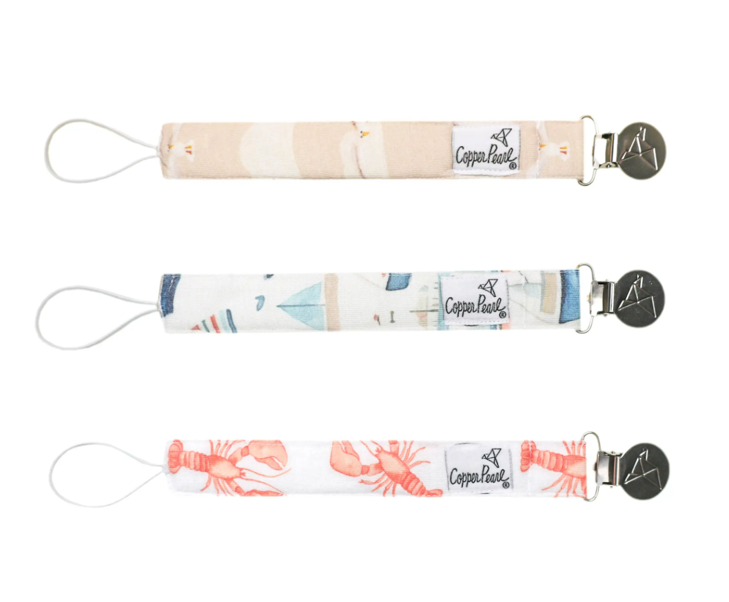 Say goodbye to runaway pacis with the Copper Pearl Fischer Binky Clip Set! Featuring a stylish mix of neutral tones and modern patterns, these clips are the perfect blend of fashion and function—because even binkies deserve a good outfit.