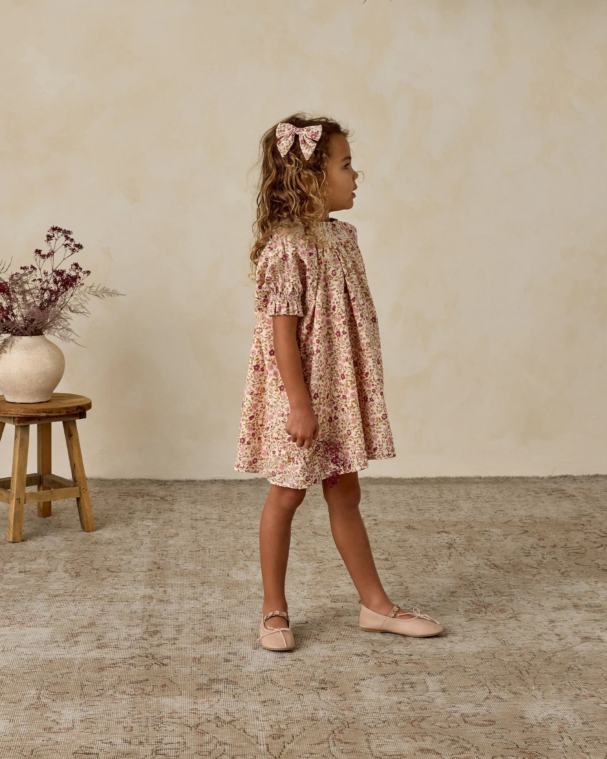 The Flower Fields Maddie Dress brings all the golden hues of fall into one timeless little piece. With a hand-smocked neckline, sweet puff sleeves, and a delicate floral print in warm berry and harvest tones, this dress feels like a stroll through an autumn meadow. β¨πΎ