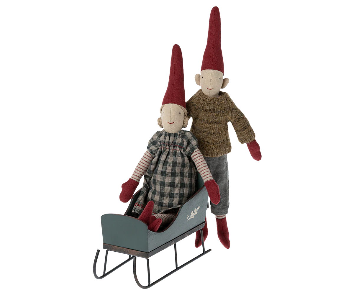 Dash through the snow in Maileg style! This vintage-inspired mini sleigh, painted a festive green, is just the right size for Maileg mice and small friends. With hand-painted details and soft cushioning inside, it’s perfect for snowy adventures, Christmas storytelling, or whimsical holiday displays. 🌟🐭