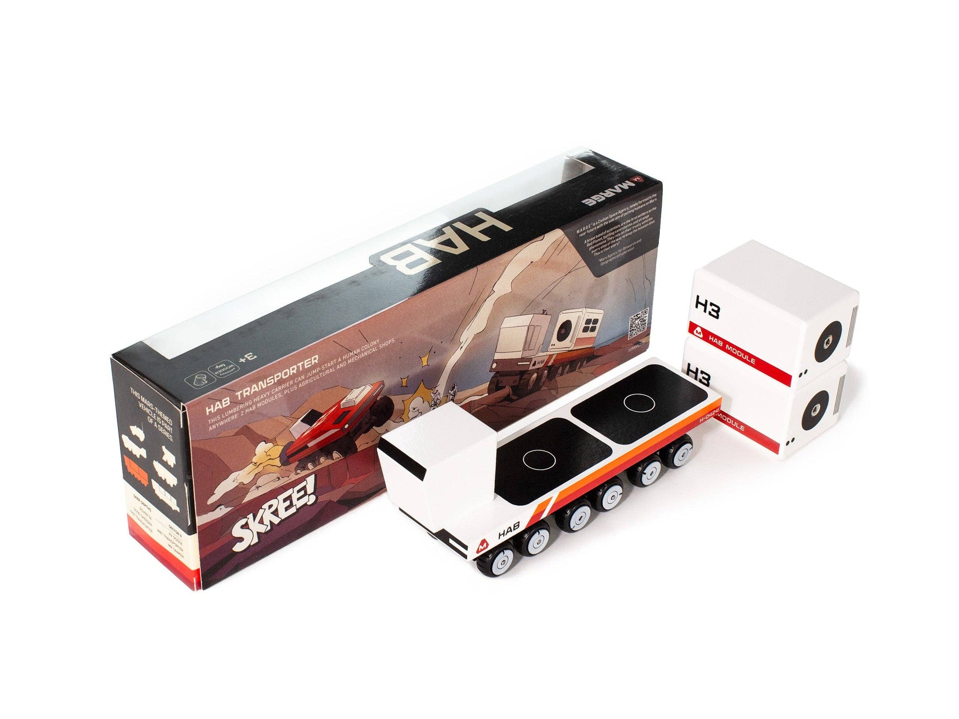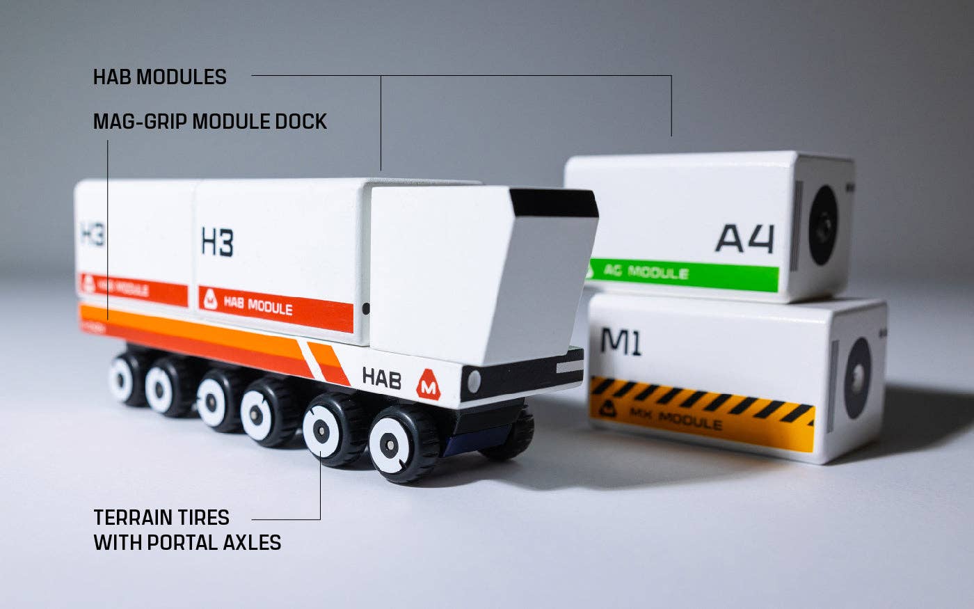 Get ready for an out of this world adventure with the HAB Transporter! This essential vehicle for early settlers of Mars comes equipped with a suspension base and can transport multiple modules for the MARGE (Mars Agency for Research & Geographical Exploration). Don't miss out on this unique opportunity!