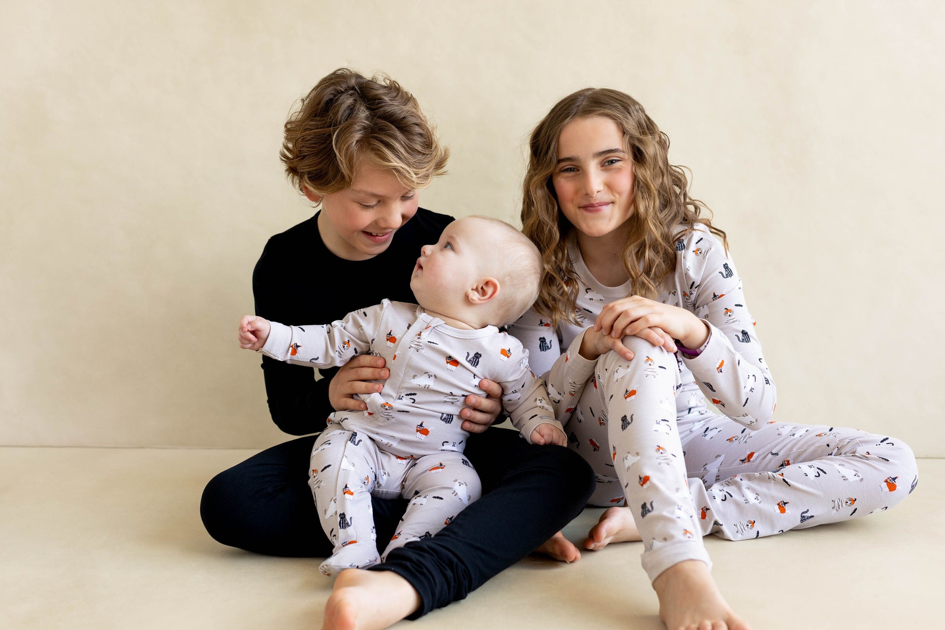 Get ready for frightfully fun dreams! 👻🎃 These Halloween PJs are covered in adorable costumed pets—from witchy cats 🐈⬛ to ghostly pups 🐶✨. On a cozy oat backdrop, they bring playful Halloween magic to bedtime while Coccoli’s soft + stretchy fabric 🌱☁️ keeps kids comfy from storytime to sweet dreams. The long-sleeve top and pull-on pants make for an easy, festive set—perfect for pumpkin carving 🎃, spooky movie nights 🍿, and Halloween morning magic 🌟.