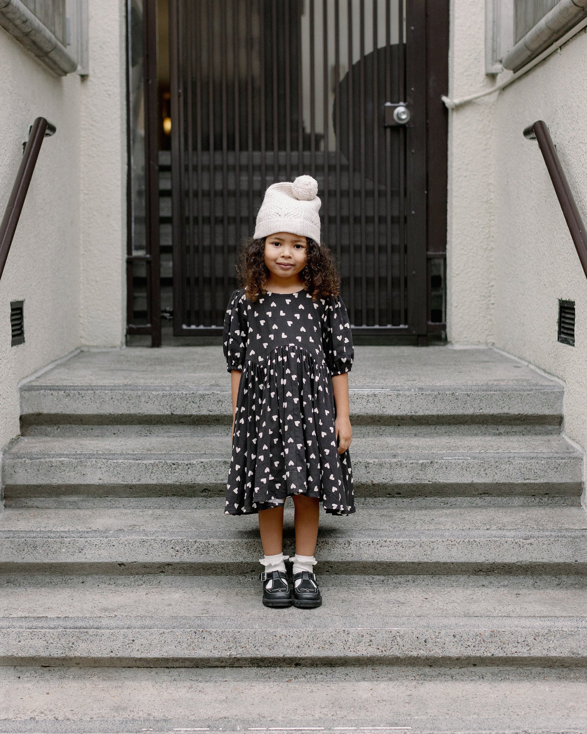 Your little darling will twirl straight into storybook magic with this enchanting Hearts Rose Dress by Rylee & Cru. Sprinkled with a garden of playful ivory hearts on timeless black, this dreamy silhouette is made for skipping, spinning, and showering the world with love.