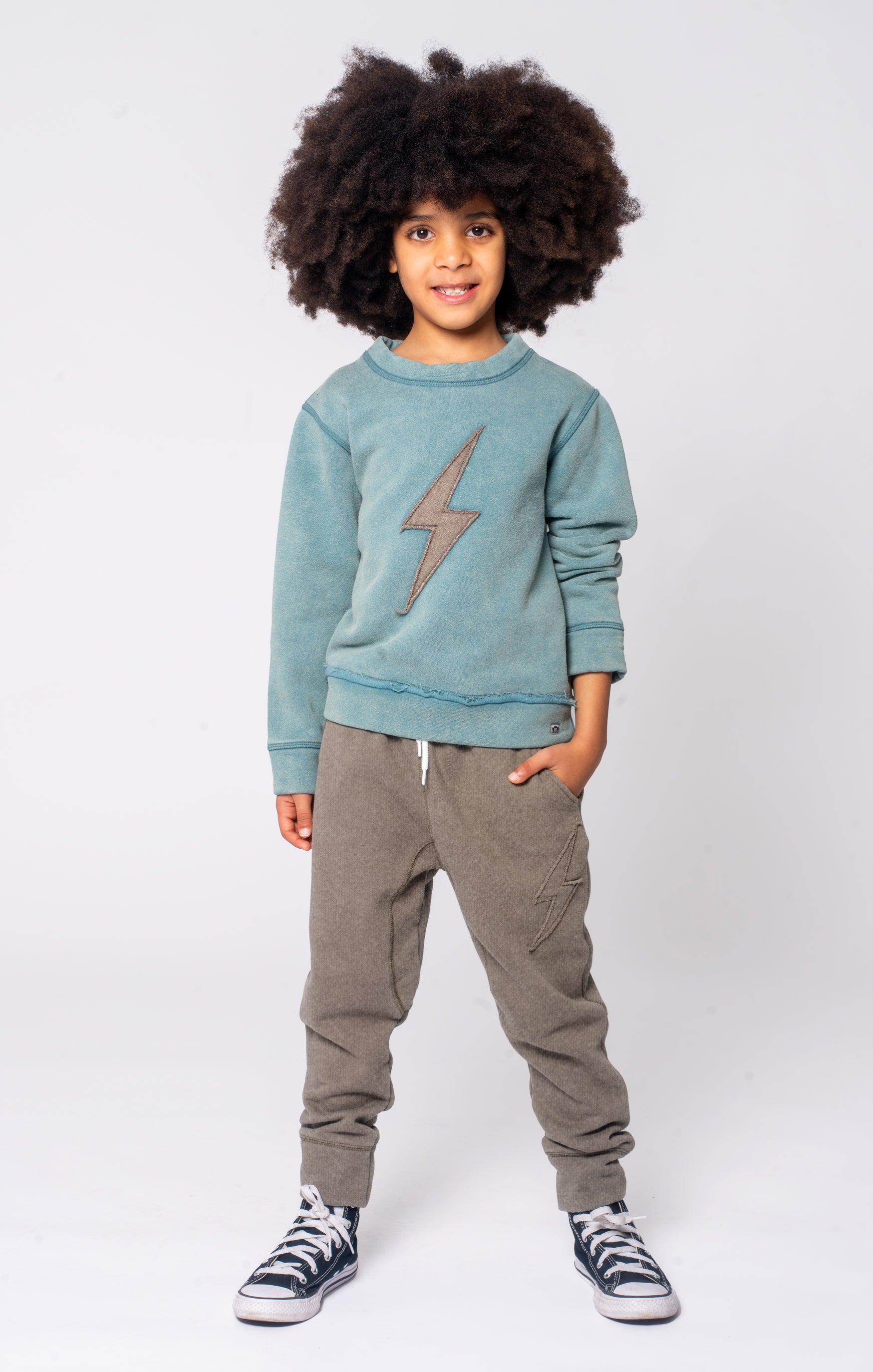 The coolest crewneck yet, the Lightening Highland Sweatshirt is a staple. With a washed denim look, make your style electric.