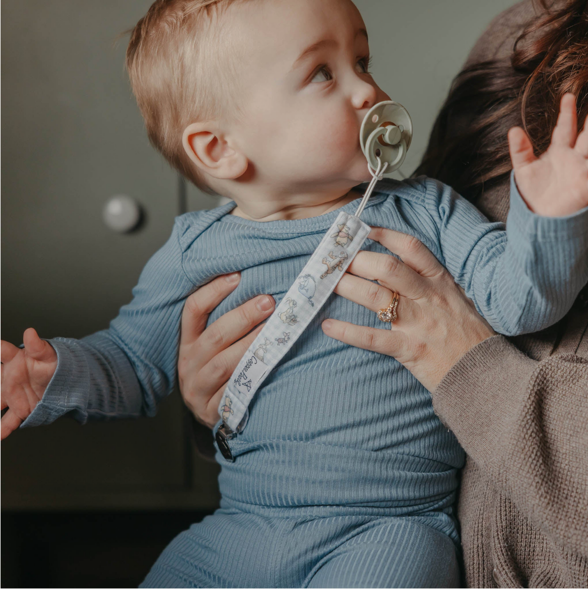 Straight from the Hundred Acre Wood and onto your diaper bag, these binky clips are practically Pooh-fect! Featuring classic characters and soft, storybook charm, this set keeps pacifiers close and clean—because no one wants a binky rescue mission in the grocery store parking lot.