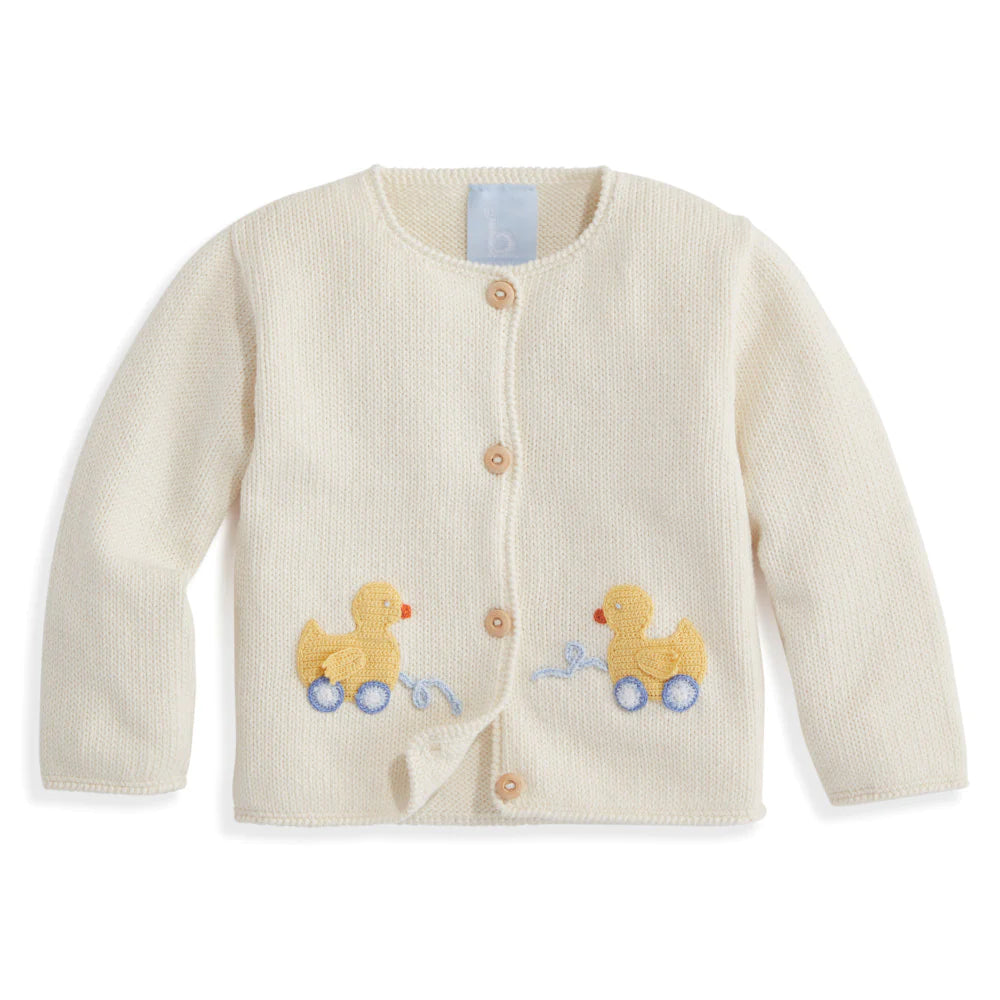 You won't believe the detail! Each applique that adorns our signature cardigans is crocheted by hand. Even the sweaters themselves are hand-loomed! 100% cotton. bella bliss® uses the finest cottons available.