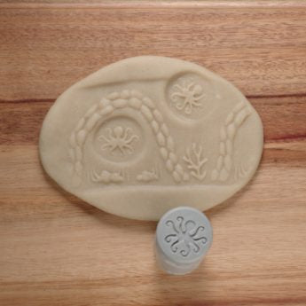 dolphin and waves, turtle and coral, fish and bubbles, seahorse and seagrass, shark and fish, octopus and cave. Made from our durable stone mix, each set contains six rollers measuring 2¾ x 1⅜” and are easy to clean. Safe for age 2+.
