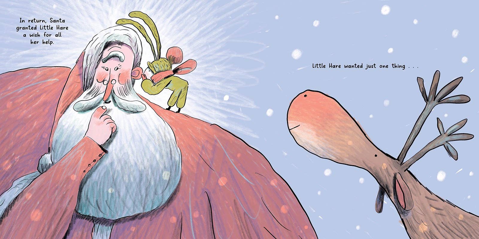 One snowy morning, Little Hare wakes to a thud on her rooftop and discovers a mysterious gift-wrapped package. Determined to find its rightful owner, she loads it onto her sled and journeys through the forest, asking each friend she meets if the gift belongs to them. Just when the trail seems to have gone cold, Little Hare encounters a familiar figure in red and white, with a long beard and twinkling glasses. ๐ ๐ผโจ