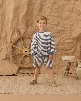 Thoughtfully designed to coordinate with the Marine collection, this crew pairs beautifully with the Marine Relaxed Shorts, Marine Gingham Perry Shorts, Marine Gingham Wide Leg Pants, and Marine Gingham Zenni Set for effortlessly cohesive looks across siblings. Whether worn casually or styled into a coordinated family moment, the Marine Stripe Oversized Crew adds that perfect finishing touch—easy, timeless, and full of coastal charm 💙✨