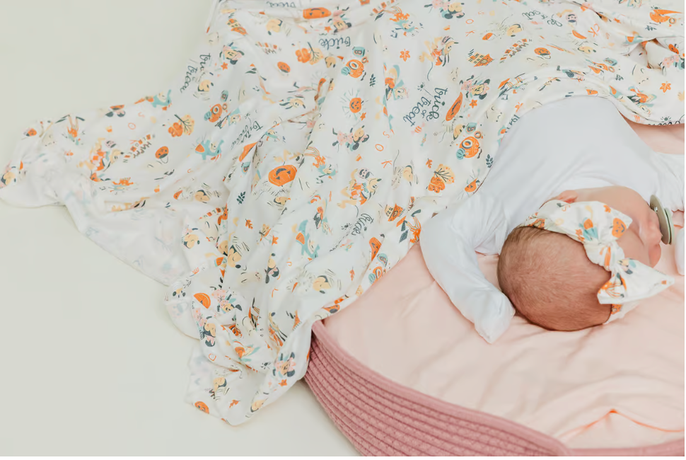 Get ready to party with Mickey's Boo Bash Headband Bow! Complete your little one's outfit with this festive accessory, perfect for taking adorable pictures. Pair it with the matching swaddle blanket or knotted gown for an extra cute look. Let the festivities begin! (And the photo ops!)
