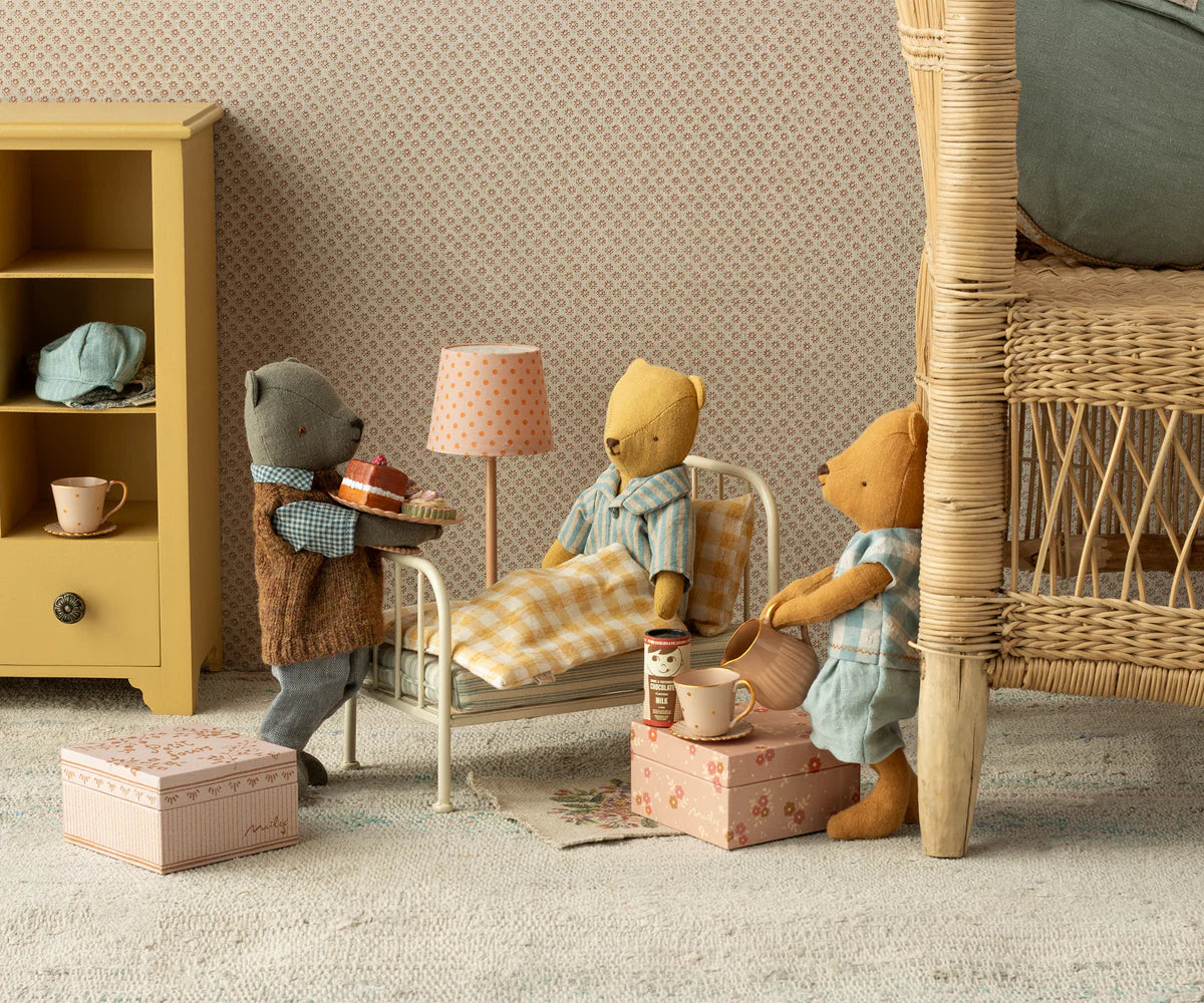 Cozy up with a cup of Maileg magic! This charming hot chocolate set includes two dainty cups with gold-dotted saucers, a classic pitcher with golden handle, and a playful tin of “hot cocoa” ready for serving. Perfectly scaled for Maileg mice and bunnies, it’s a must-have for snowy afternoons, holiday gatherings, or teatime storytelling. 🐭🎄
