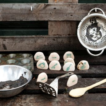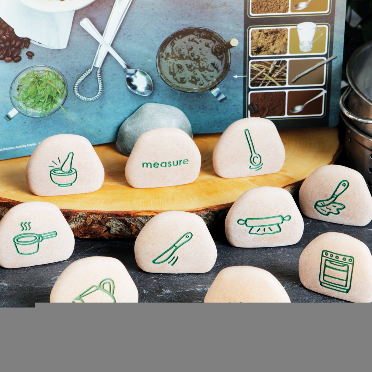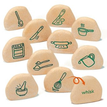 Measure, cut, whisk and stir your way to sequencing success! These tactile stones show a simple image of a cooking process on one side and a related word on the reverse. Ideal for introducing key vocabulary, the stones can be easily lined up to show the stages of a recipe, indicate an area for a specific task or allocate roles. Made from a durable stone and resin mix, each set contains ten process stones measuring 1½-2″ high.