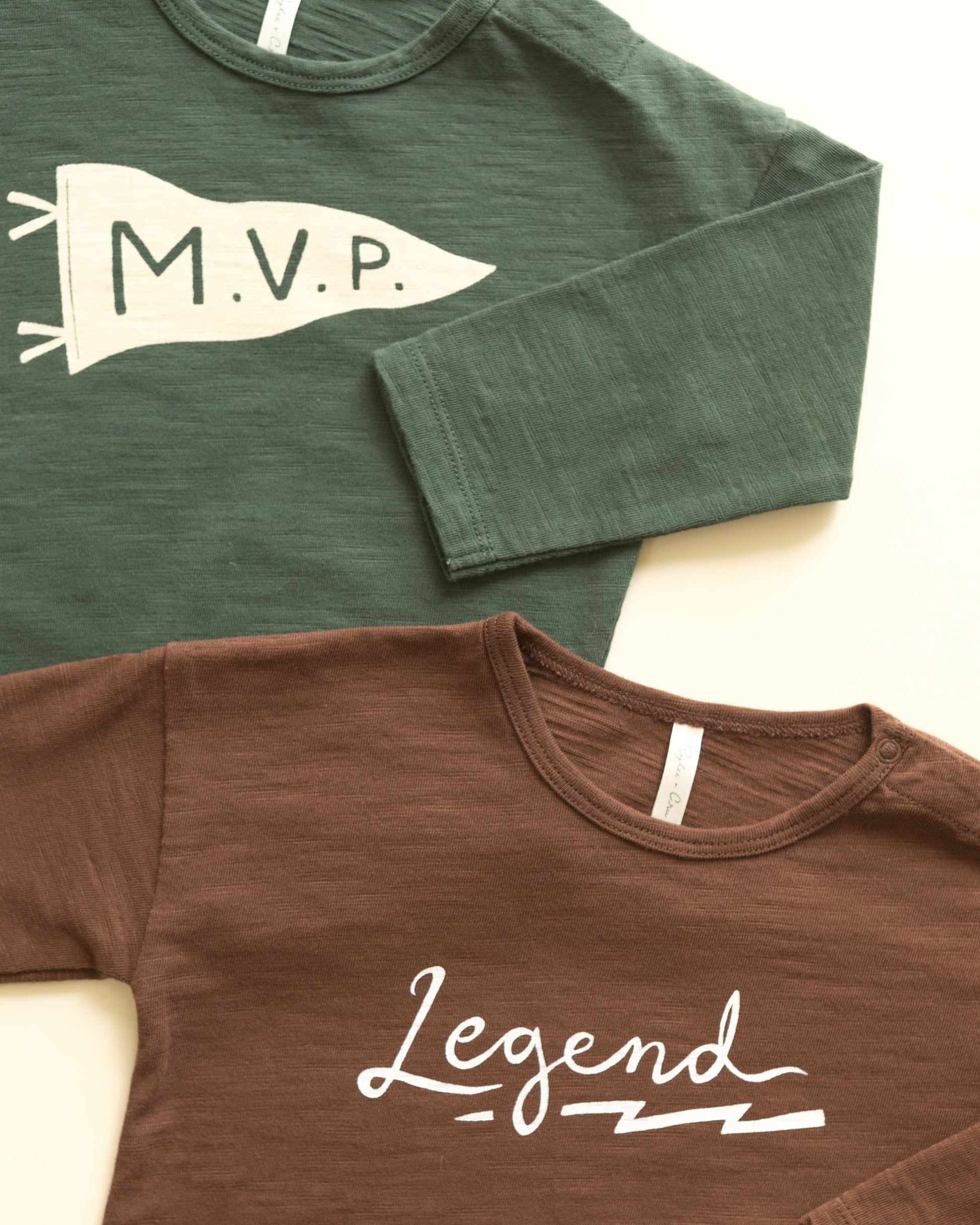 Big plays, big dreams, big style ๐ฅ๐! This long sleeve tee proudly cheers M.V.P. for your little champ ๐. With its classic pennant graphic, itโs perfect for mini tailgates, backyard scrimmages ๐๏ธ, or just being the star of everyday life ๐. Pair with joggers, denim, or layered under a jacket for the ultimate sporty-cool vibe ๐๐ฅ.