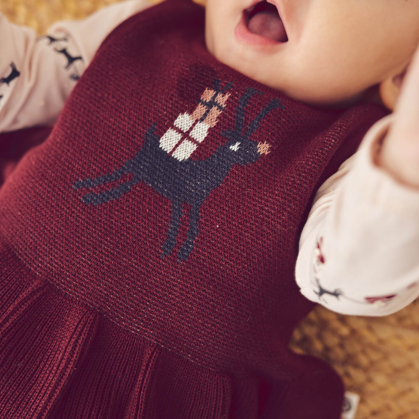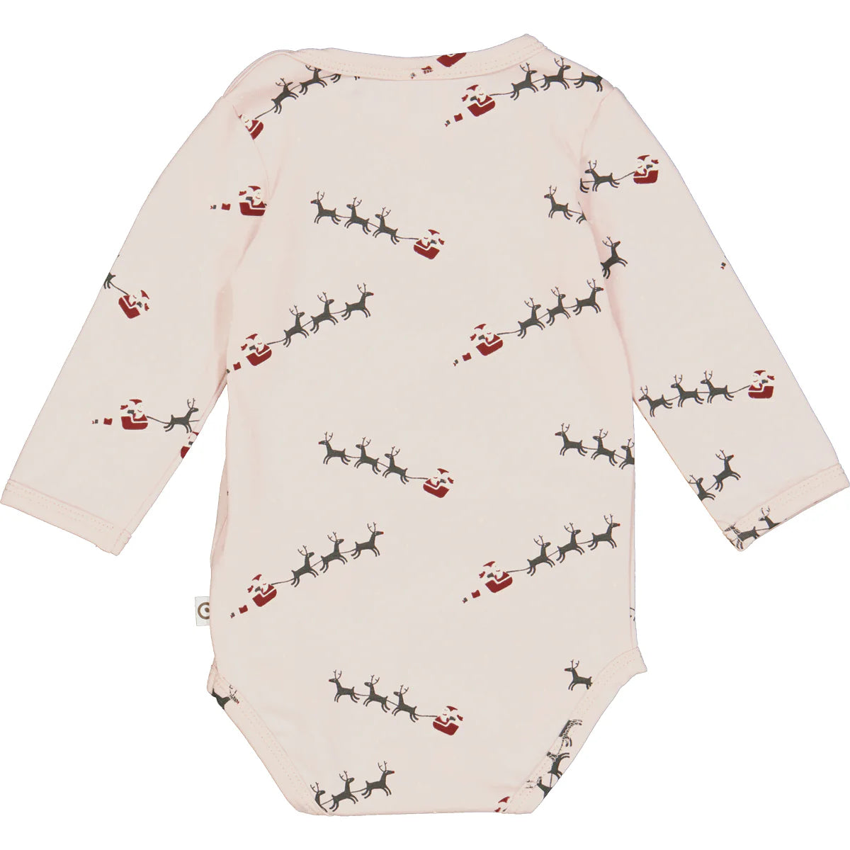 Spread holiday cheer with our Santa Nightingale/Cabernet Bodysuit! This sweet body features a Christmas-inspired all-over print, perfect for dressing up during the festive season. Made with soft and stretchy single jersey fabric, it opens at the neck and bottom with snap buttons for easy dressing. Make a playful statement with this festive and fun bodysuit.