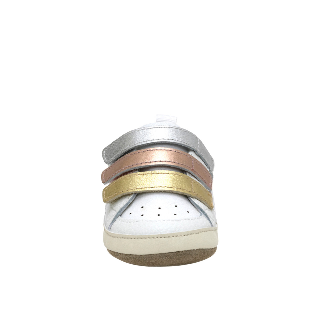 Your little explorer’s first steps deserve shoes that sparkle with magic! These Novie First Kicks bring all the shimmer and shine of Neverland fun with their metallic rainbow straps—silver, rose gold, and golden sunshine 🌈✨.