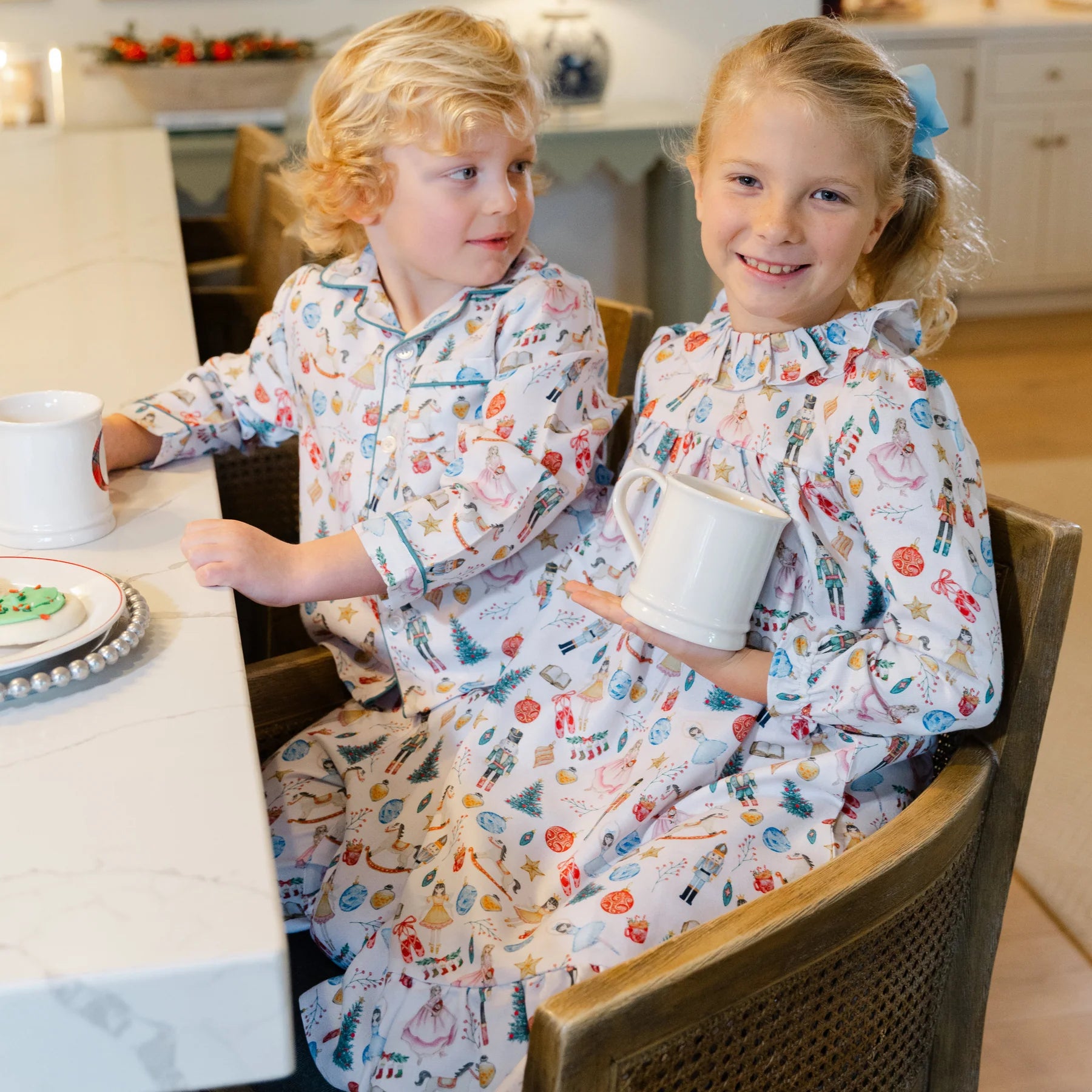 Snuggle in for a Christmas Eve as magical as the ballet itself! 🌟 This Bailey Boys 2-piece pajama set is sprinkled with Nutcracker charm—think dancing ballerinas, toy soldiers, sparkling ornaments, candy canes, and twinkling Christmas trees. 🎁💃🌲