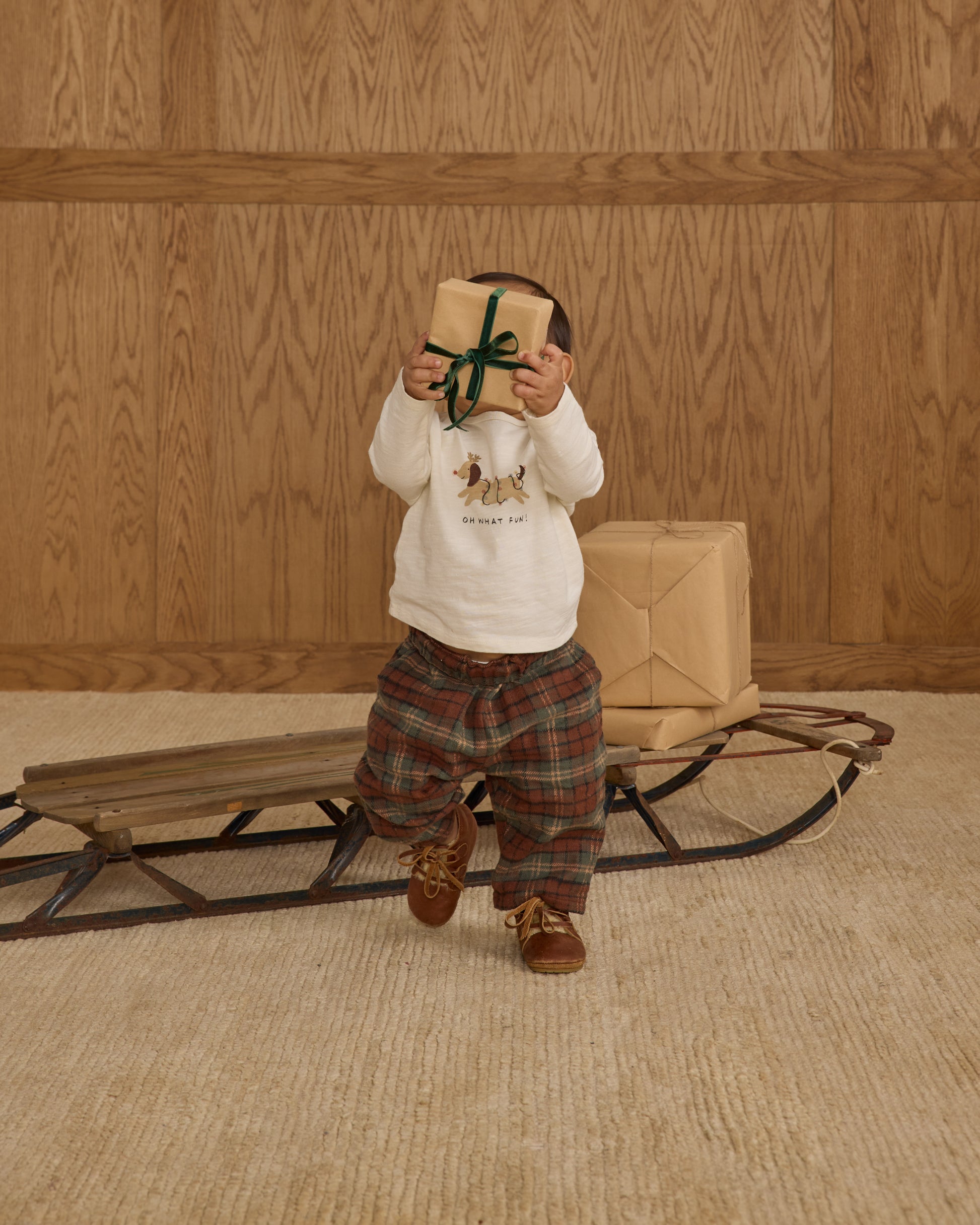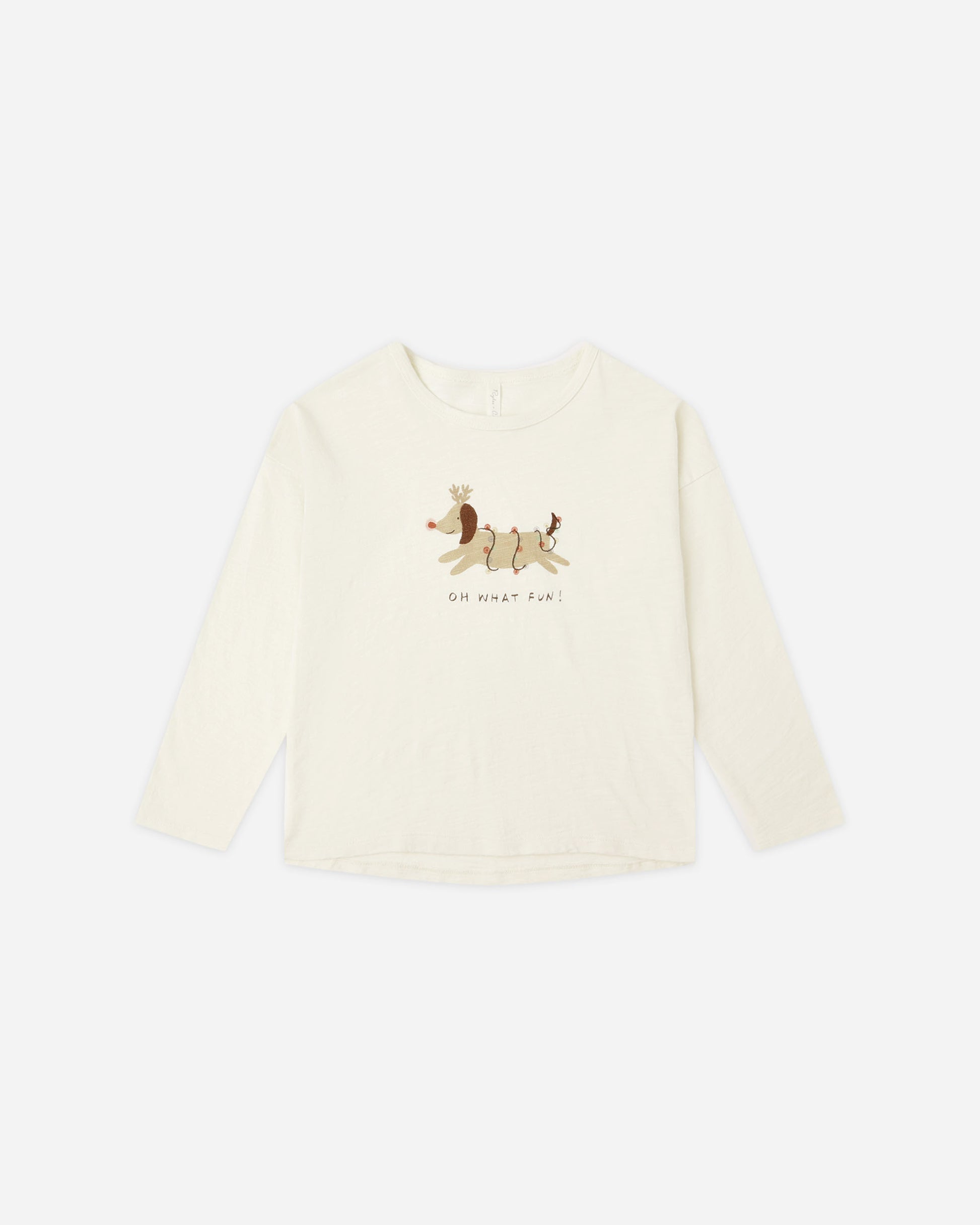 The Oh What Fun Tee is holiday cheer wrapped in the softest cotton. Featuring a playful pup decked out in reindeer antlers and twinkling lights, this long sleeve is sure to bring giggles and joy to the season. Its creamy background, relaxed fit, and easy pull-on style make it a go-to favorite for everything from festive playdates to cozy mornings at home.