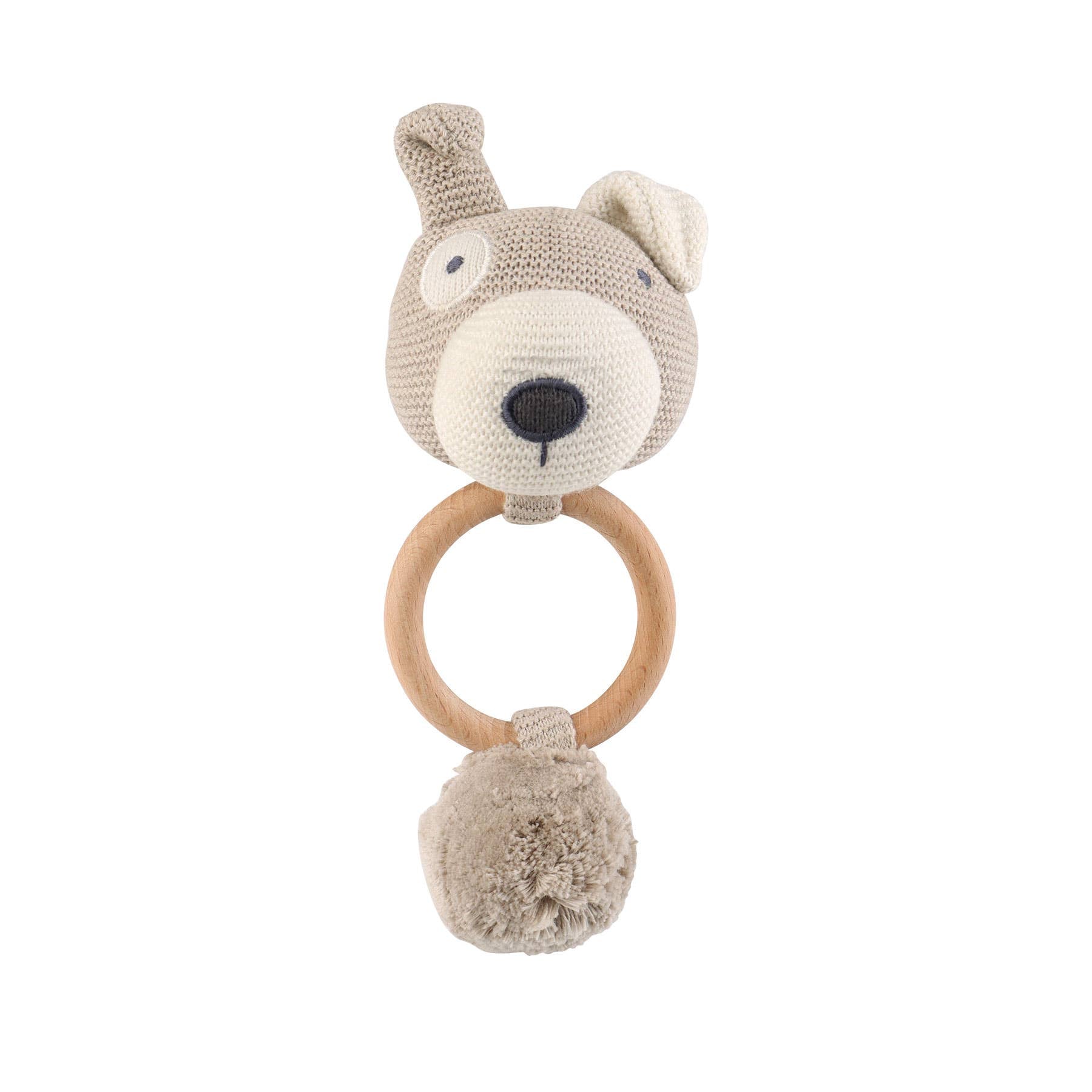 Introduce your little one to their new best friend - our Organic Knit Dog Rattle in Oatmeal. Crafted with GOTS certified organic cotton, this lovable character provides a soothing sensory activity with its calming rattle noise. The beech wood grip ring is perfect for little hands, making it a must-have for any new arrival. Made with love in India. (Gift-giving made easy!)