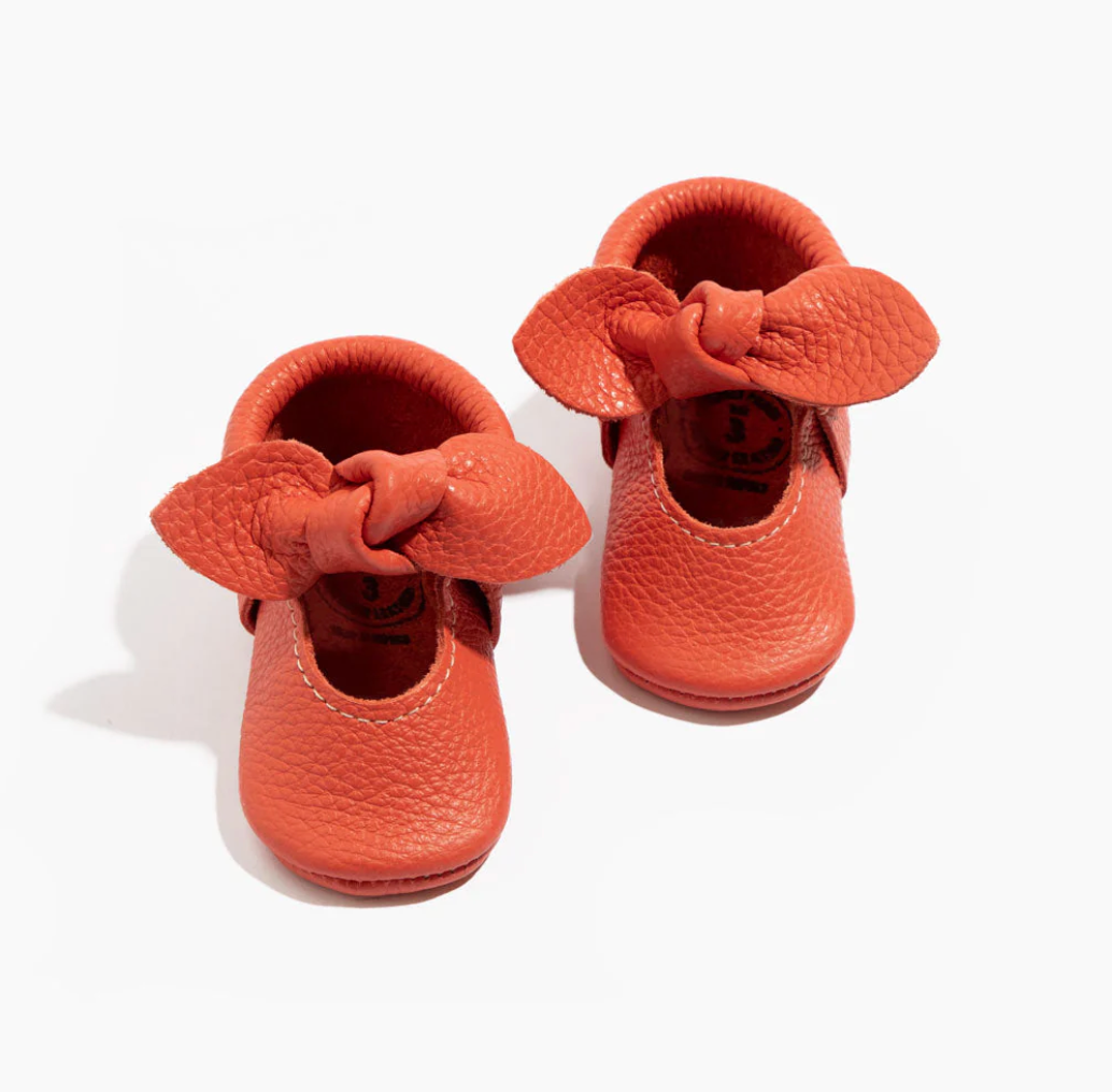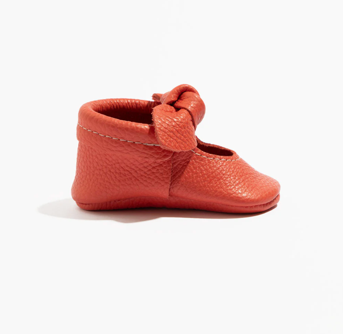 Add some playfulness to your little one's wardrobe with our Poppy Knotted Bow Baby Shoes! Made of buttery soft genuine leather, these moccasins feature a cute knotted bow in a vibrant red-orange color. These all-leather shoes are sure to turn heads and keep your baby's feet comfy.