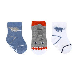 🦖✨ Stomp, stomp… rawr-some toes coming through! This Robeez 3-pack of dinosaur socks brings prehistoric fun to every step — a blue pair with a gentle stegosaurus, a white pair with a triceratops on patrol, and the showstopper: a grey pair with 3D dino plates and a cheeky smile 🦕💚. Soft, stretchy, and adventure-ready, they keep tiny feet cozy for everything from living room “safaris” to backyard fossil hunts. At Neverland & Co., we call them Jurassic joy for little explorers 🧚♀️🌋