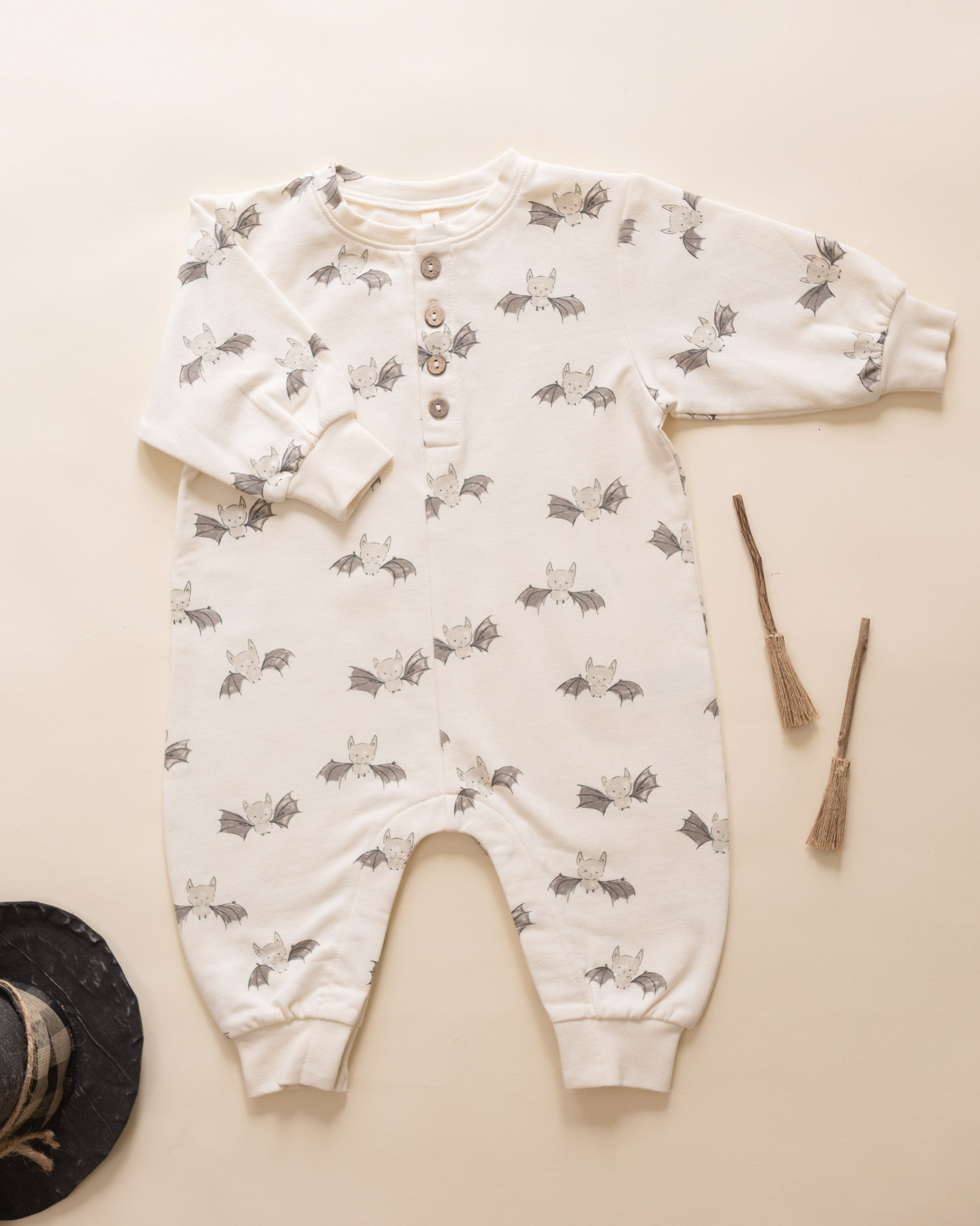 Quincy Mae Relaxed Fleece Bats Jumpsuit – Halloween Capsule 👻🖤