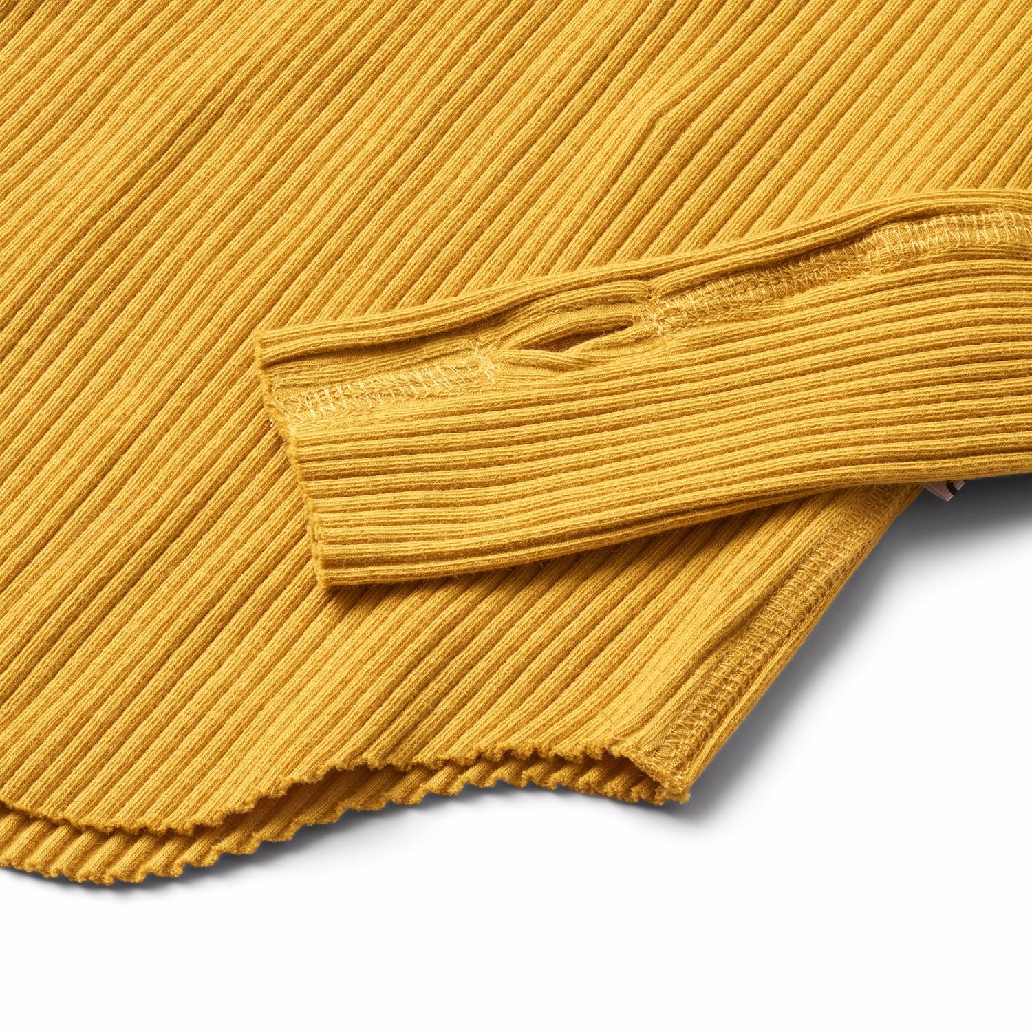 With its golden honey hue and cozy ribbed texture, this top wraps your little one in warmth and wonder like the first golden rays of morning light. ๐ผโ๏ธ Thumbholes at the cuffs add a playful twist (and a dash of extra snug!), making it perfect for twirling, tree-climbing, or curling up with a storybook. ๐๐