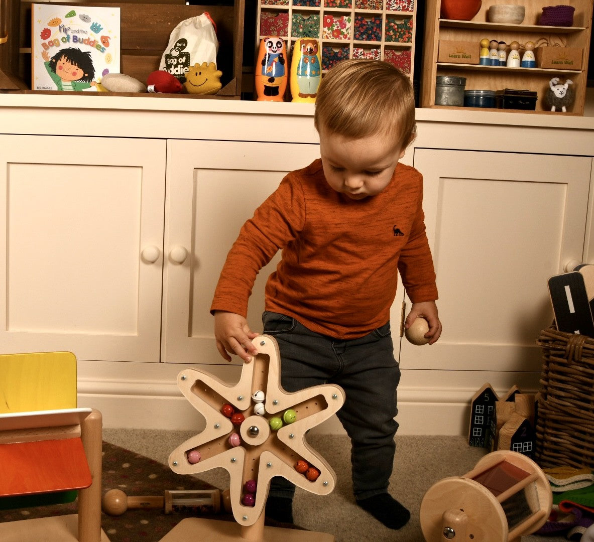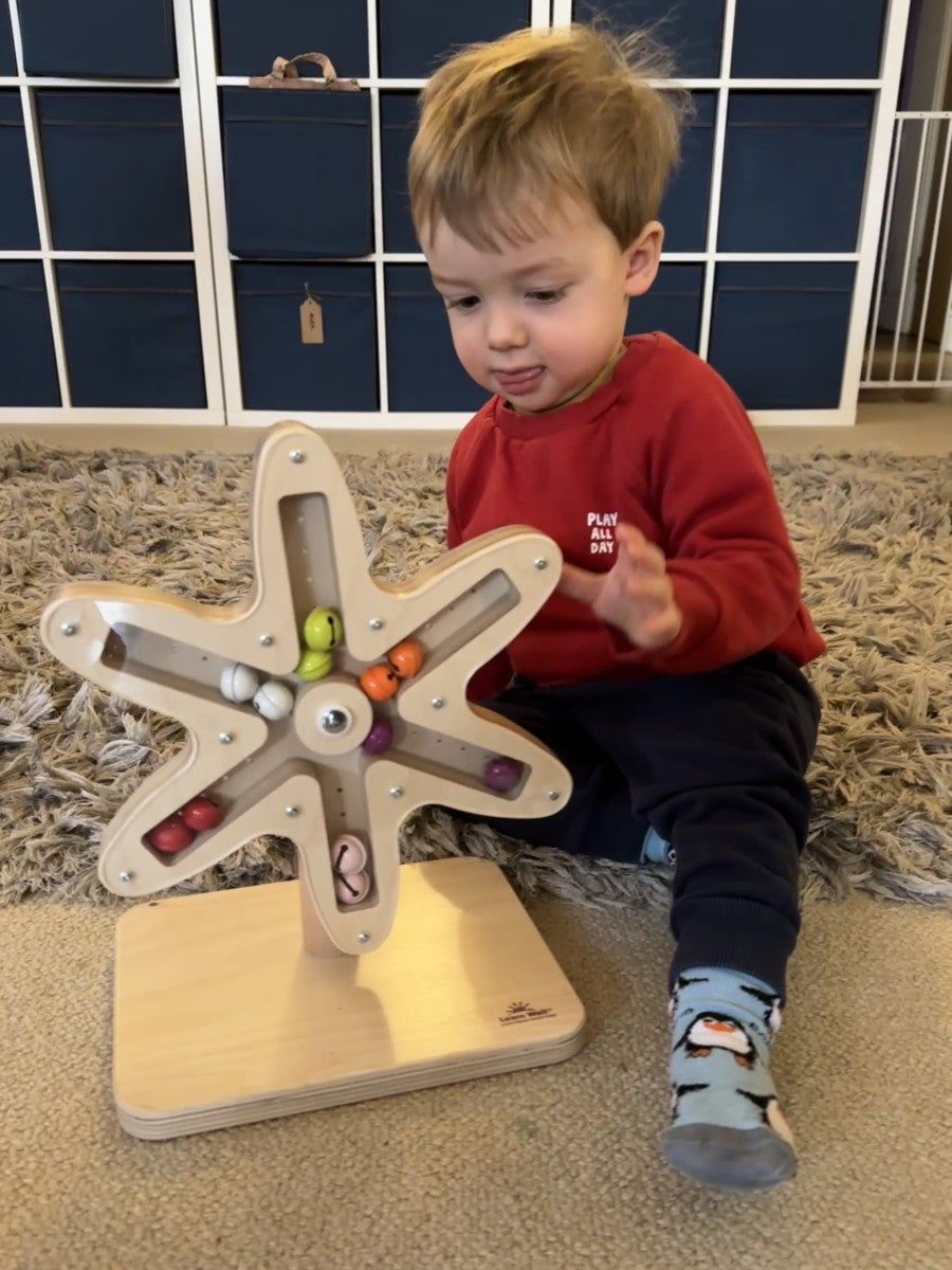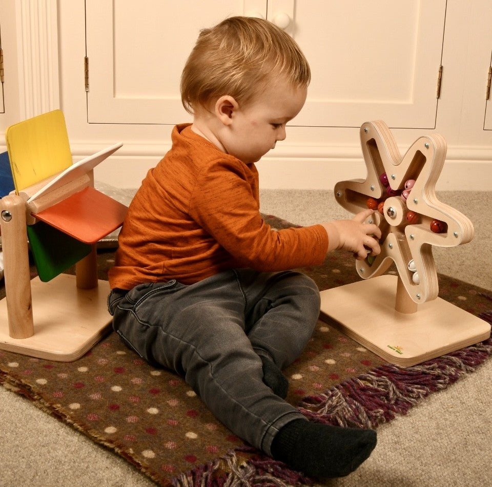 The rotating bell flower is ideal for exploring sight and sound with young children and older ones with additional needs. The enclosed bells chime pleasantly as the flower is spun, making