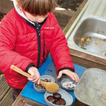 These three nesting bowls invite handling. Designed to fit comfortably in small hands, they are ideal for children to collect and store items for display. Suitable for use indoors and outside, the bowls are perfect for mixing and weighing in the mud kitchen, and can be washed clean after use ready to inspire on another day. The set includes three bowls ¬ small, medium and large – measuring between 3-5″. Suitable for ages 18 months and above.