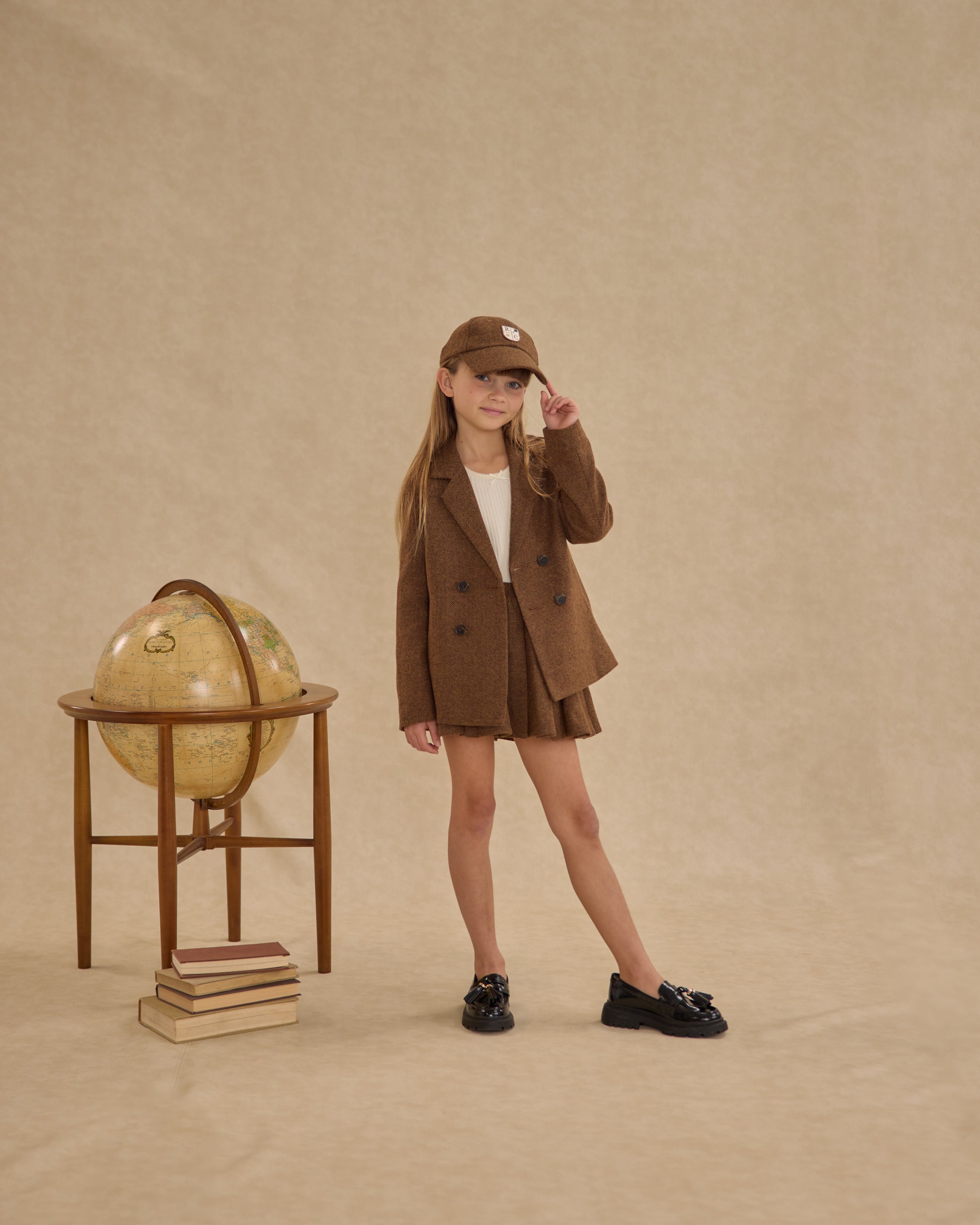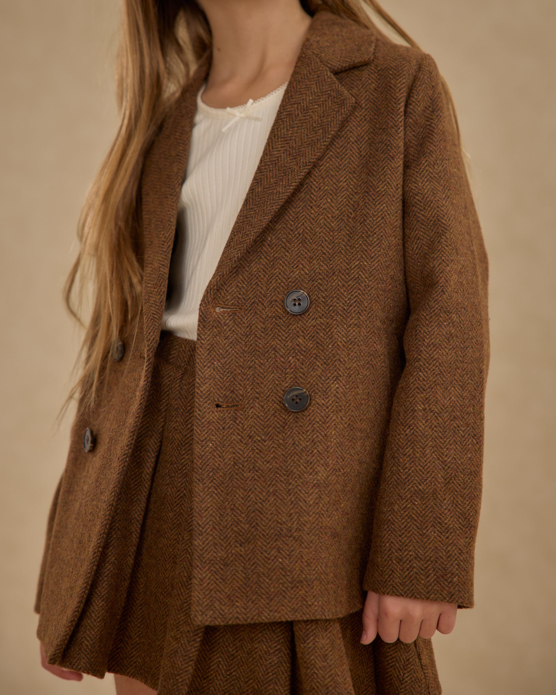 Timeless and tailored with a touch of play 🍂✨—this double-breasted blazer in warm rustic plaid is the perfect layer to dress up any look. Pair it first with the Matching Rustic Plaid Pleated Mini Skirt 🤎 for a complete set that’s polished yet playful. It also styles beautifully over the Cream Ribbed Top 🤍 and Denver Mini Skirt 🖤 for a modern mix, or layered with the Brown Bobble Cardigan or Dusty Blue Collared Sweater 💙 for extra warmth and contrast.