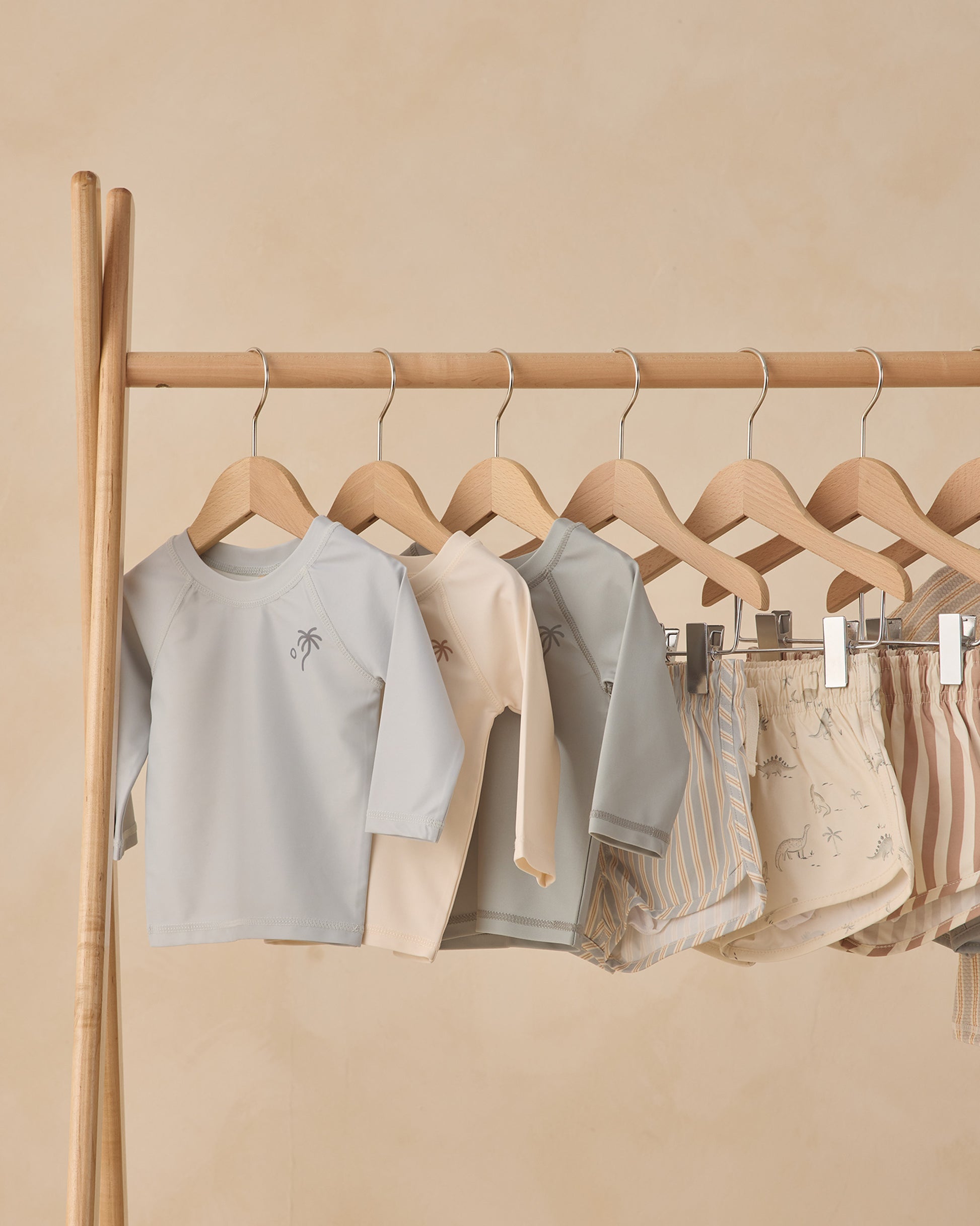 Fresh as a seaside breeze and cool as shaded summer afternoons, the Sage Rashguard is a sunny-day essential for little wave chasers. 🌊💚 Its soft sage hue feels calm and coastal—perfect for beach mornings, lake days, and backyard splash sessions.