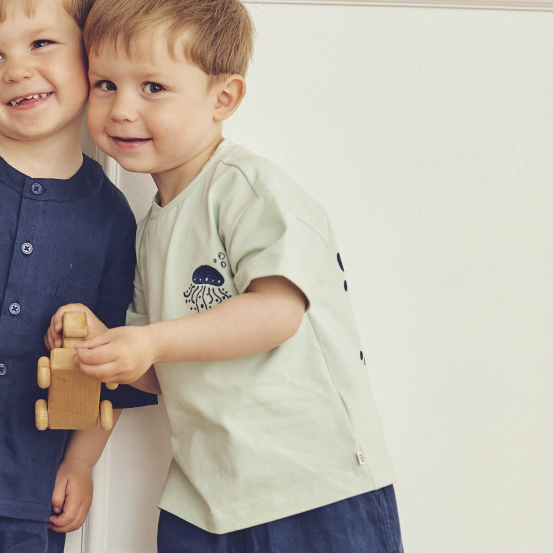 Crafted from breathable organic cotton, this tee keeps tiny adventurers comfy whether theyโre exploring tide pools, climbing playground ships, or simply soaking up sunshine โ๏ธโ. A sweet little jellyfish floats on the front, while the bold oversized jellyfish print on the back makes the real splash โ tentacles dancing and bubbles drifting just like an underwater daydream ๐ซง๐ชผ.