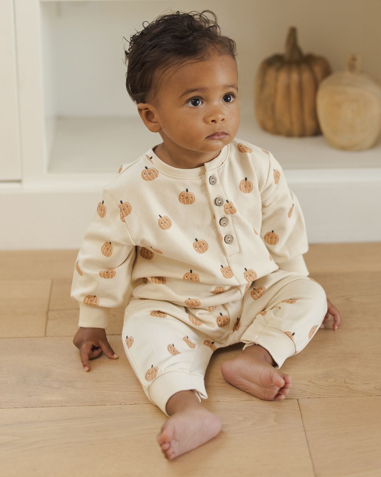 Quincy Mae Halloween Capsule – Smiley Pumpkins Fleece Jumpsuit 🎃👻🧡