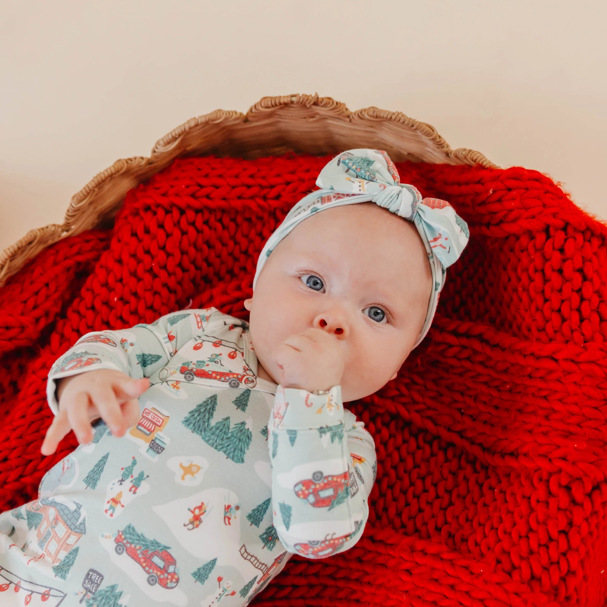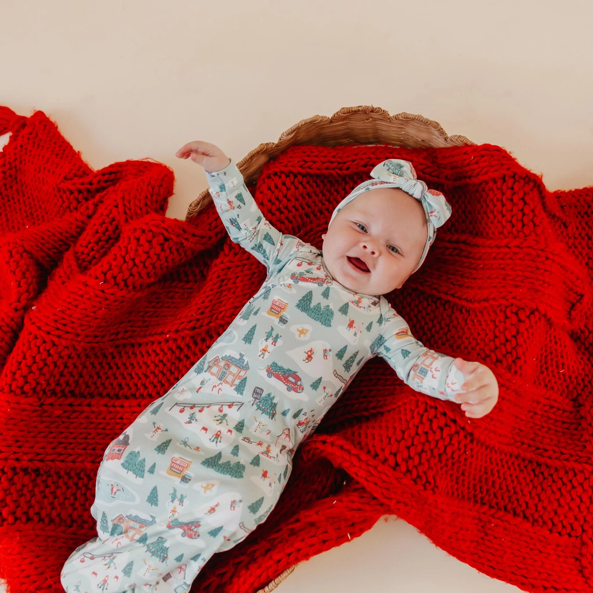 From first snuggles to frosty-morning feedings, this cozy knotted gown wraps your baby in storybook winter magic ❄️✨. The cheerful Snowy Slopes print brings to life a charming alpine village where reindeer dance and snowmen sing 🎶☃️. Designed for dreamy comfort and midnight-change ease — just untie, change, retie, and snuggle back into the warmth of Neverland’s snowy glow 💫🎄