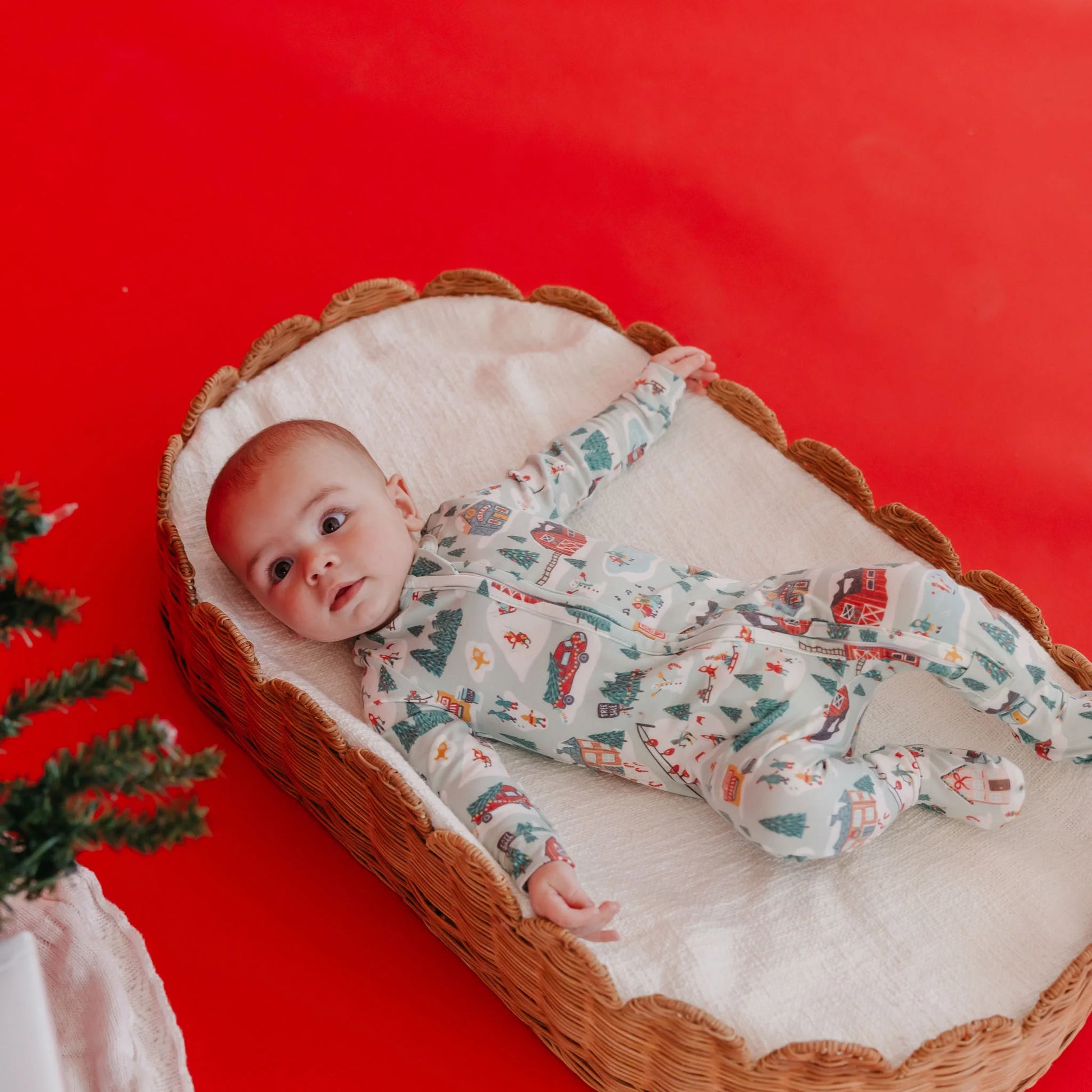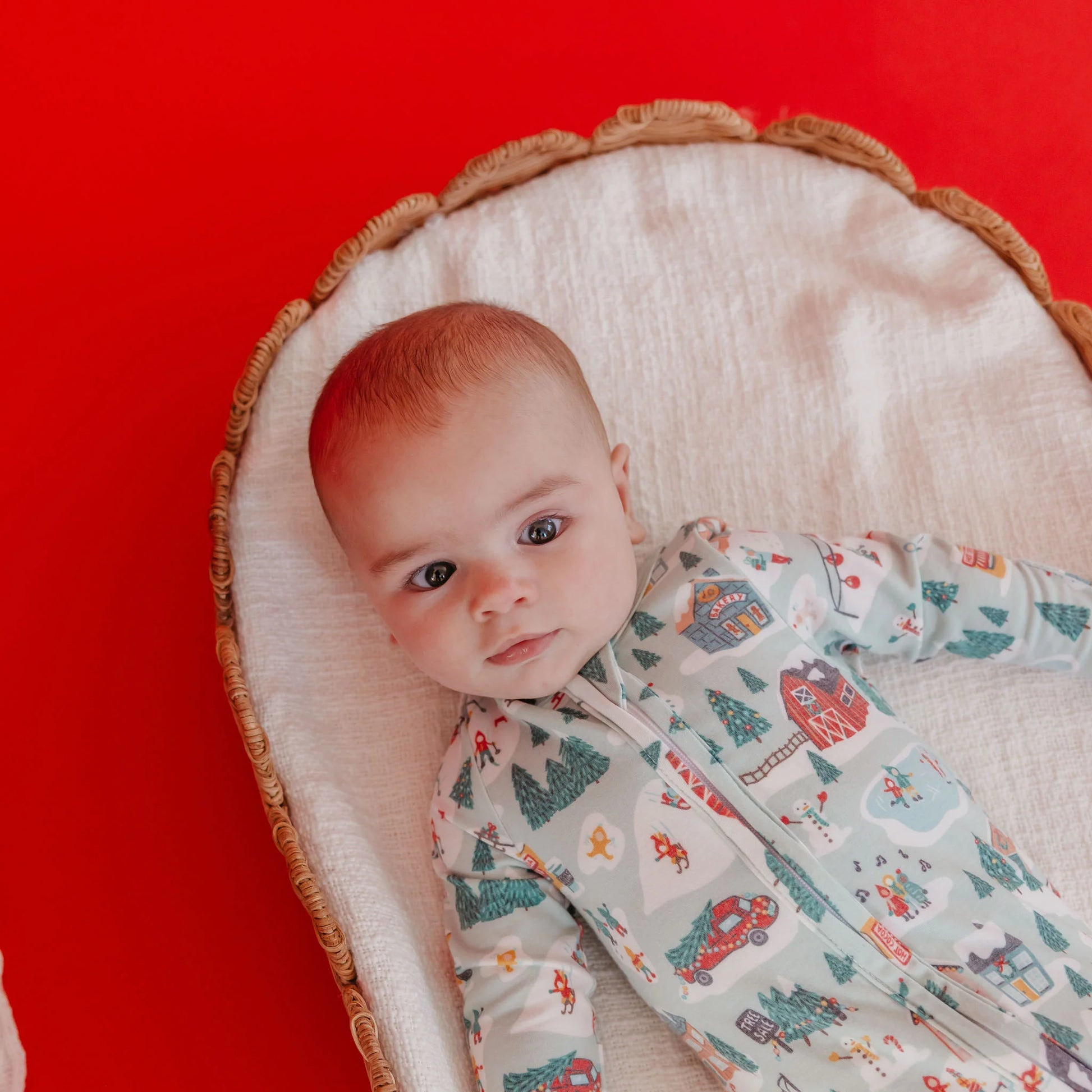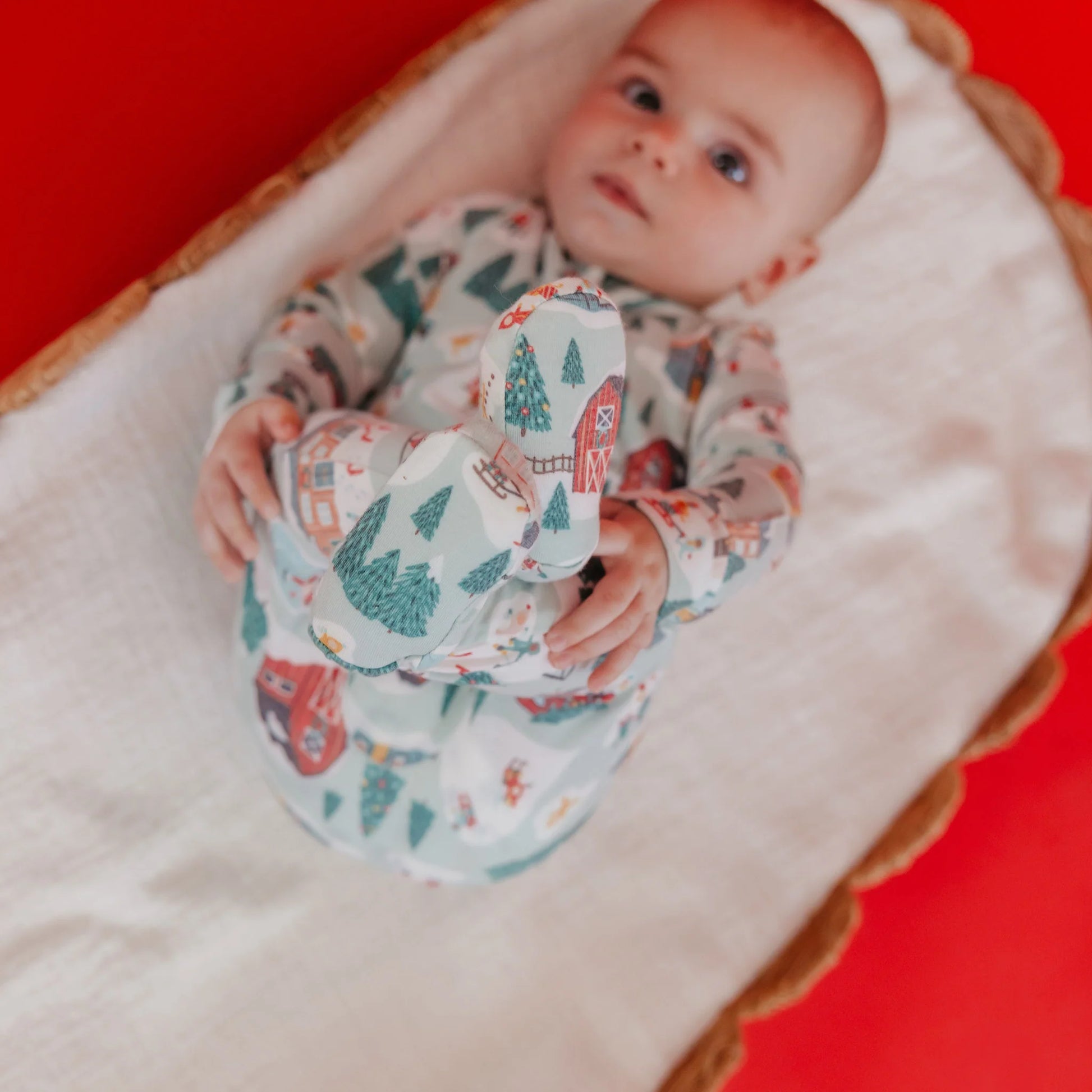 Bundle up your little snow bunny in the softest adventure ever! This darling Snowy Slopes footie captures a winter wonderland filled with sled rides, tree-hauling trucks, and cocoa-stand cheer 🎄☕️. Made from dreamy stretch knit, it’s designed for cozy cuddles after chilly days of imaginary skiing and giggles in the snow. Easy two-way zipper = effortless changes (and more time for bedtime snuggles under twinkle lights) 💫🦌❄️