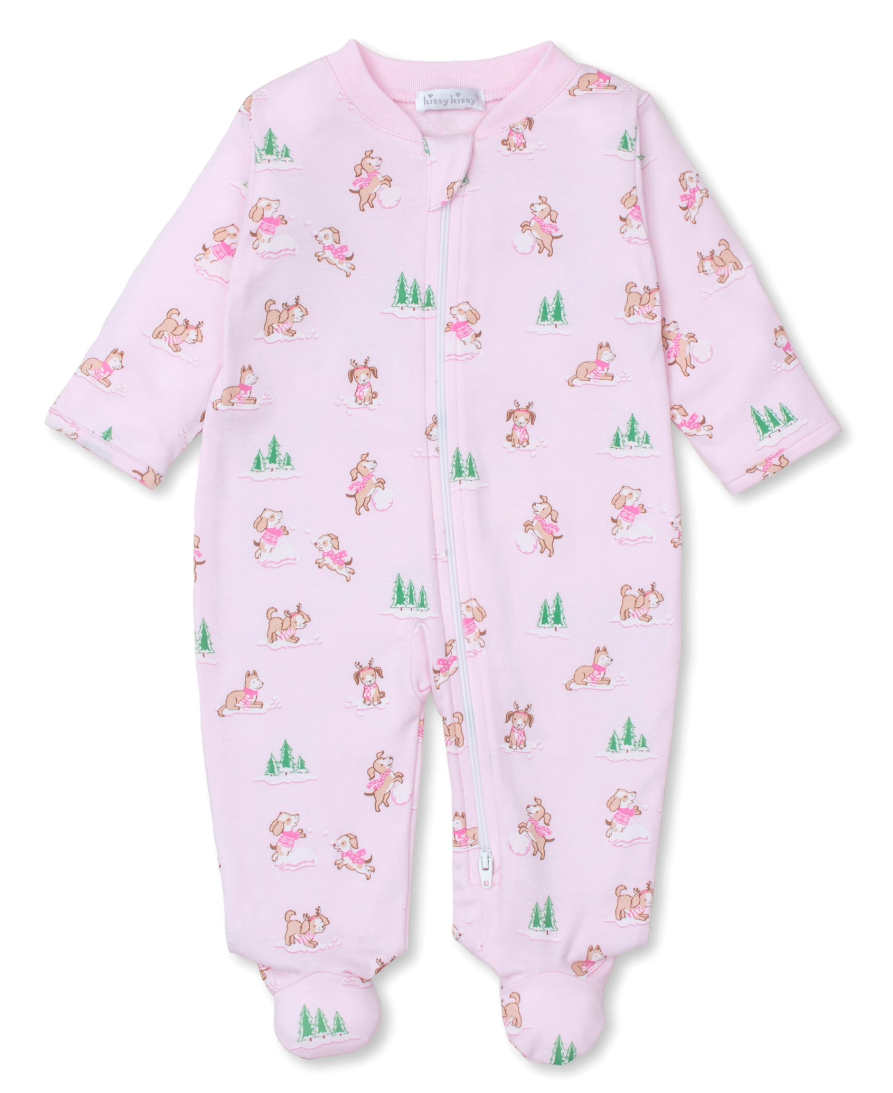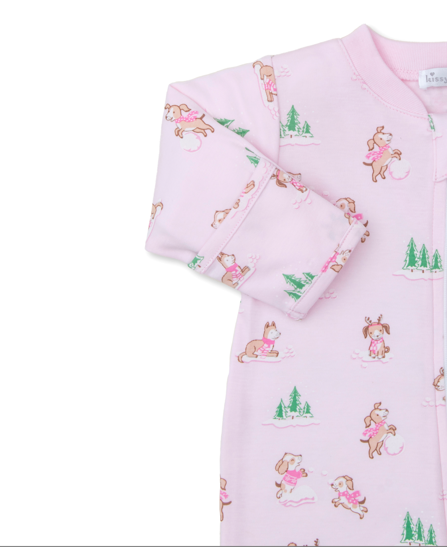Get ready for winter cuteness overload with our Puppy Snowball Pranks Footie! Made with super soft 100% Pima cotton using sustainably sourced materials from Peru, this footie features frolicking puppies in a winter wonderland. Perfect for keeping your little one warm and cozy all season long. #snowballfight