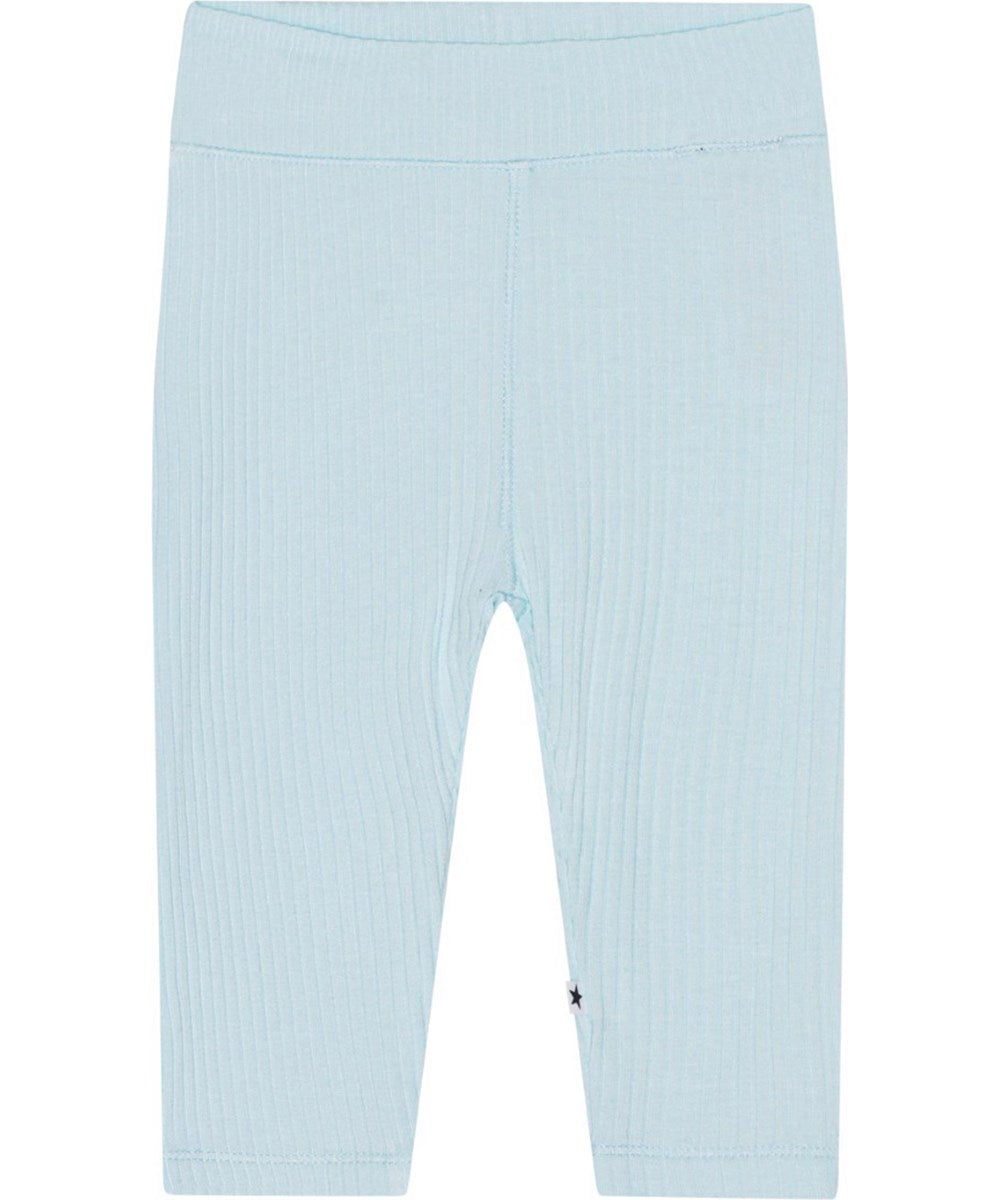 Light blue jersey leggings for small children in soft viscose. These leggings are snug fitting with a wide rib at the waist. The stretchy rib ensures a comfortable fit. This Molo product contains LENZING™ ECOVERO™ fibres.